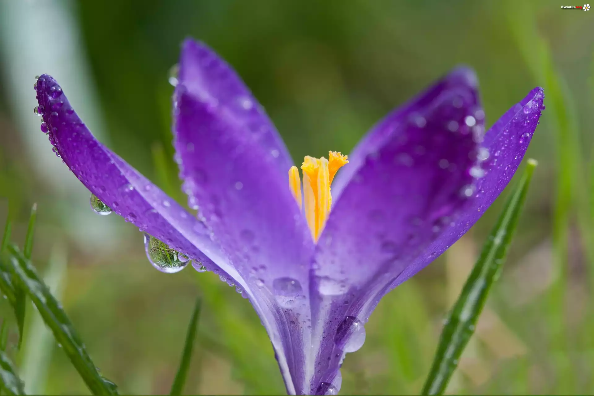 Fioletowy, Krokus, Krople, Makro - Zdjęcia