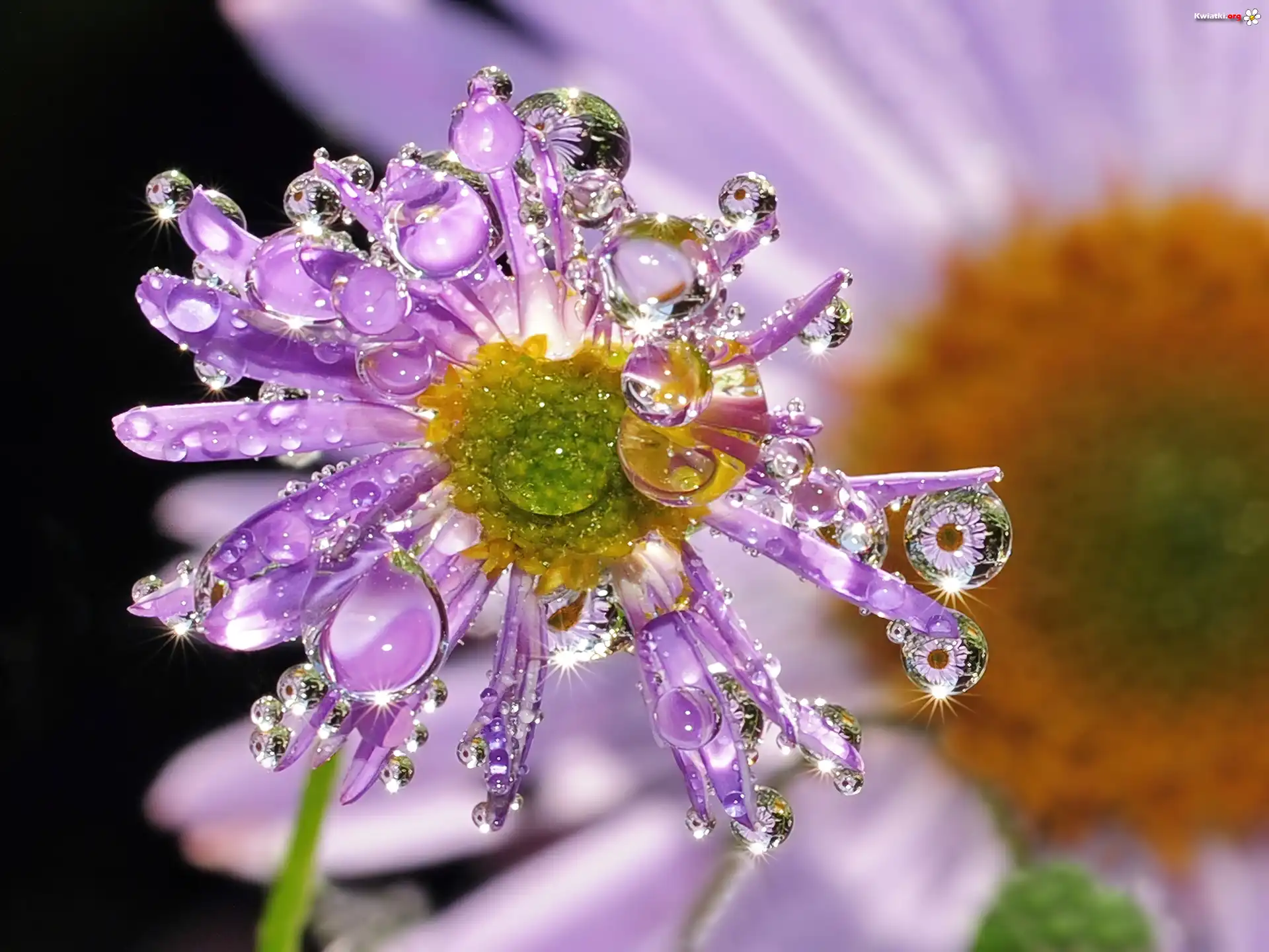 Fioletowy, Kwiat, Krople, Wody - Zdjęcia