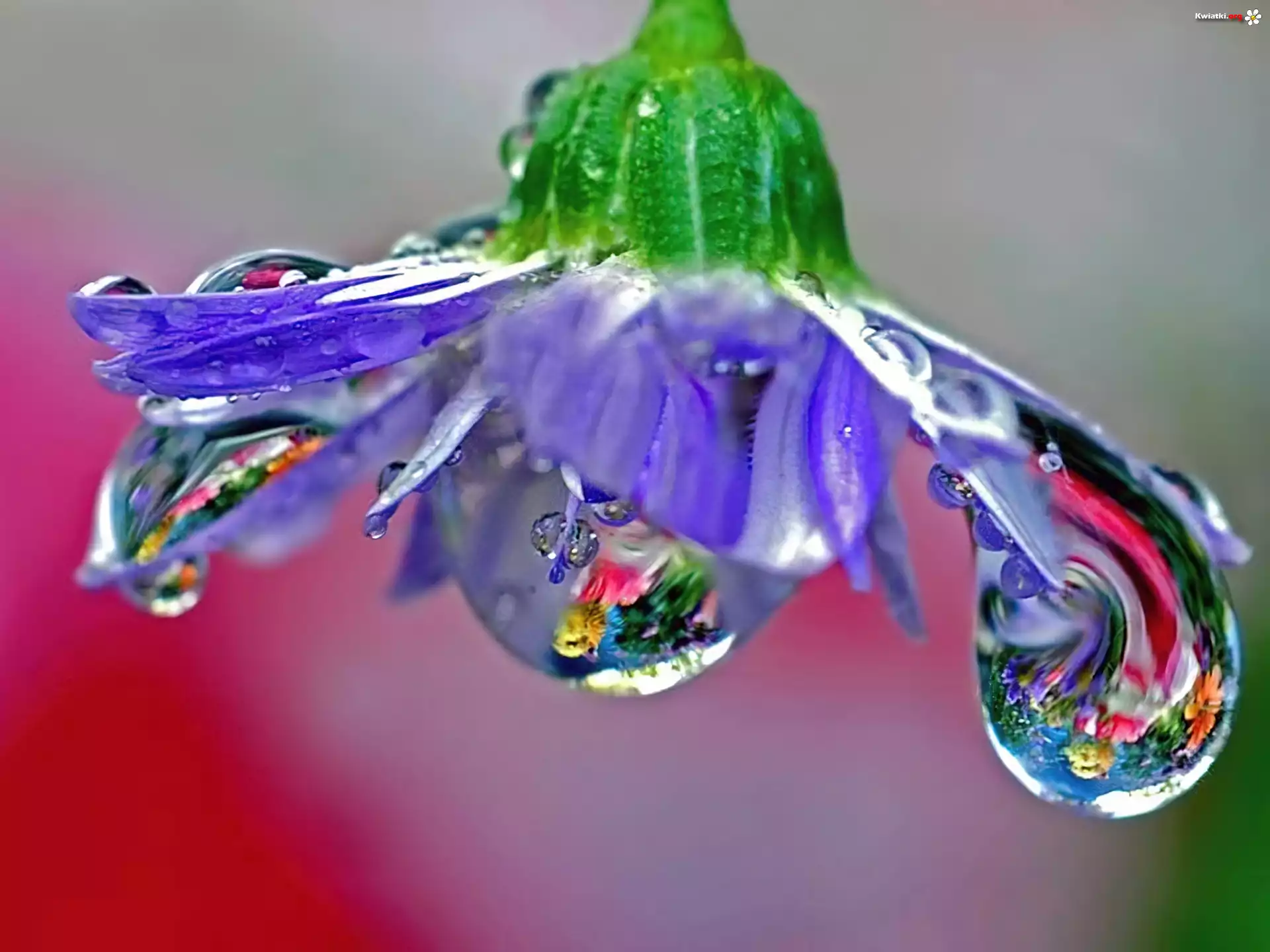 Kwiat Fioletowy, Kwiatek, Krople, Wody