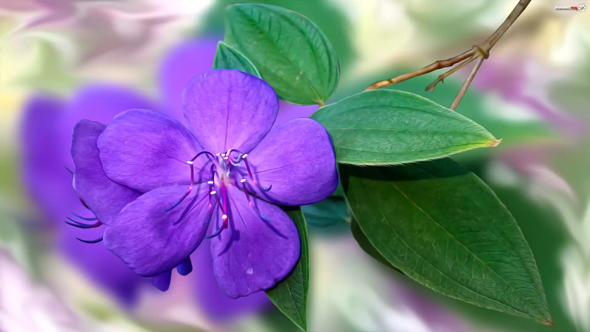 Fioletowy, Kwiat, Liście, Grafika - Zdjęcia