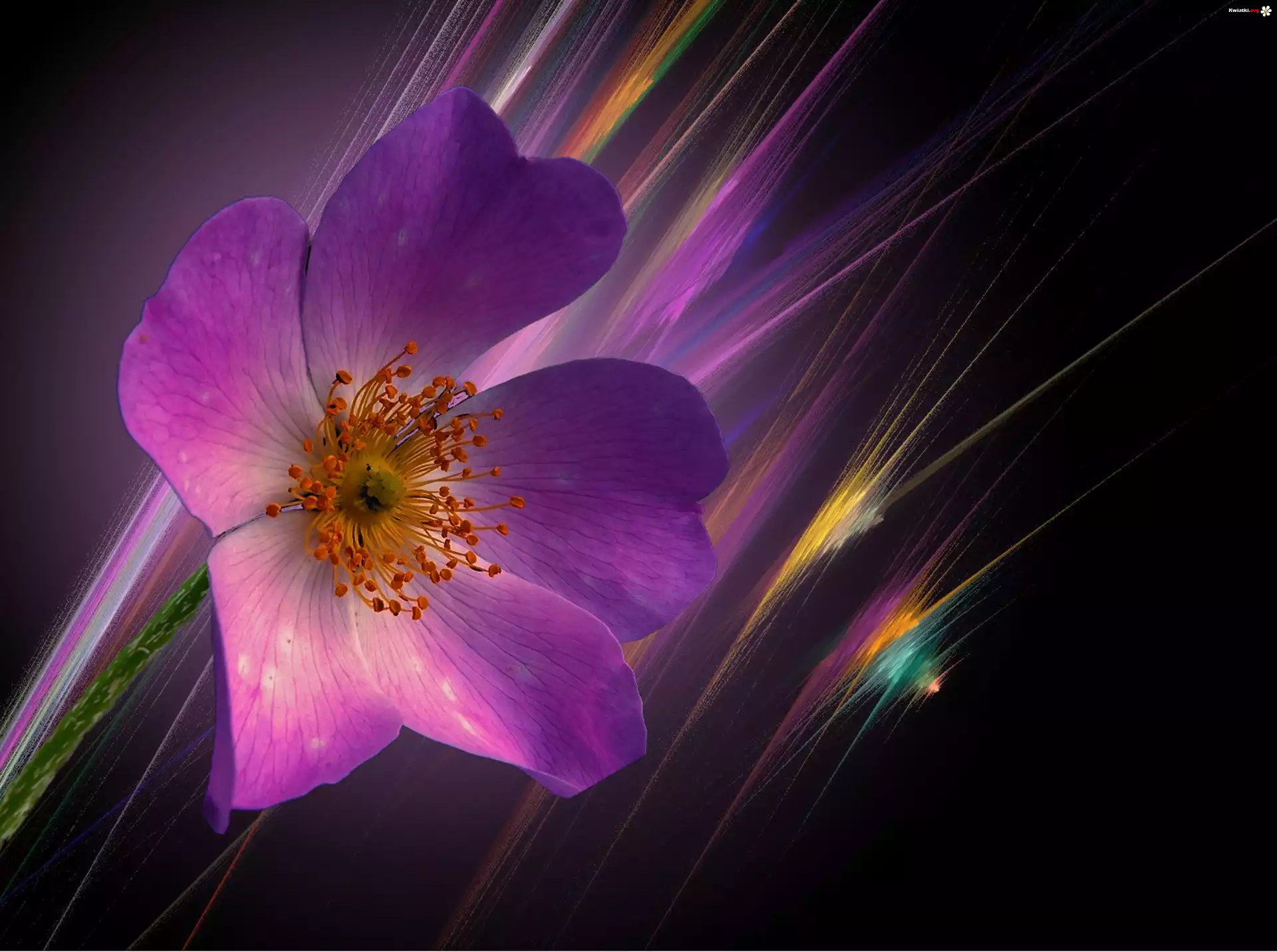 Kwiat Fioletowy, Kwiat, Kolorowe, Refleksy, Grafika