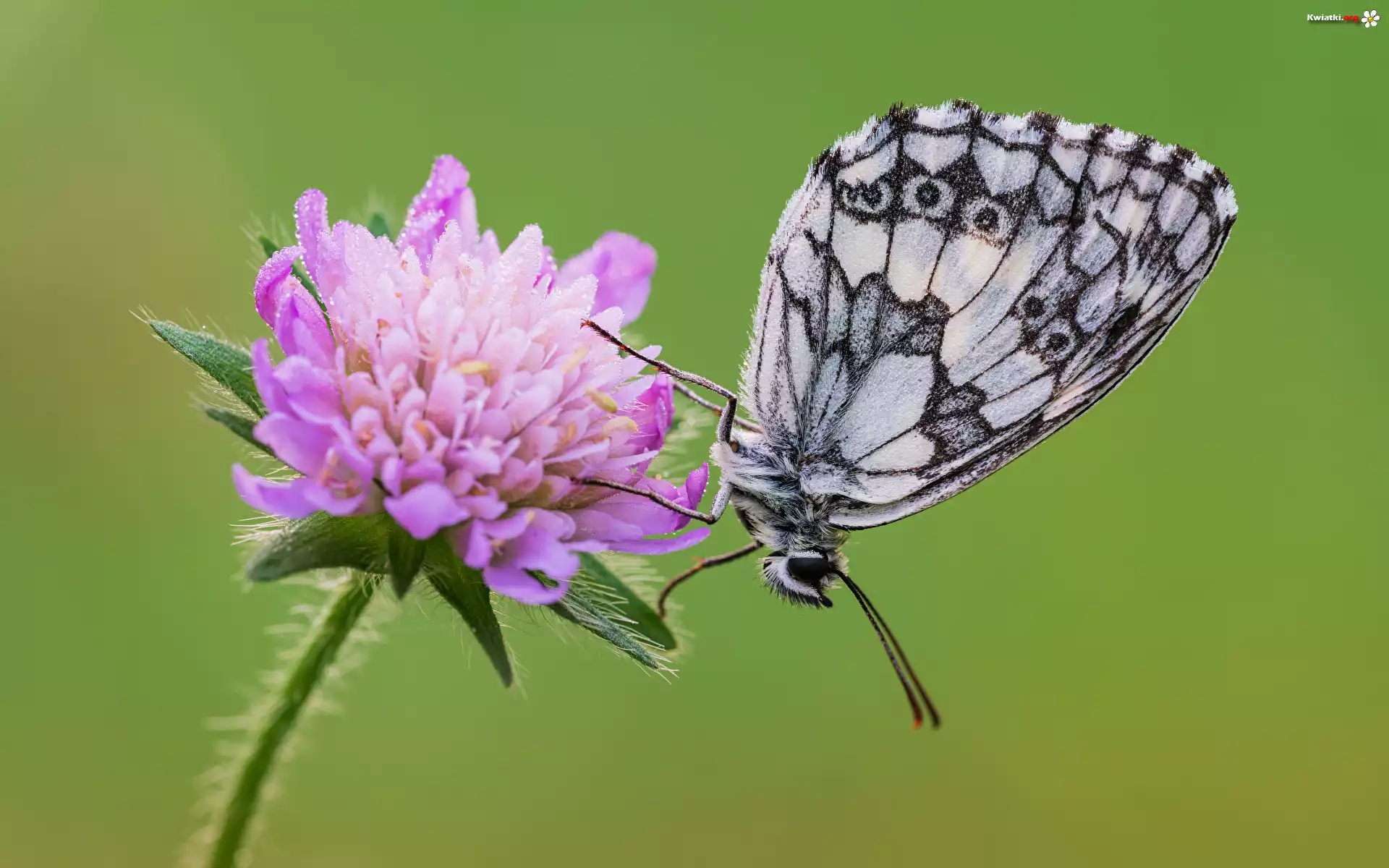 Kwiat Motyl, Polowiec szachownica, Fioletowy, Kwiat, Świerzbnica polna