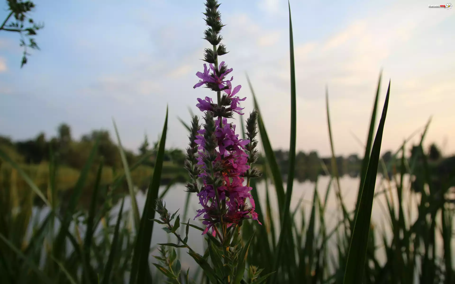 Kwiat Fioletowy, Kwiat, Trawa, Jezioro