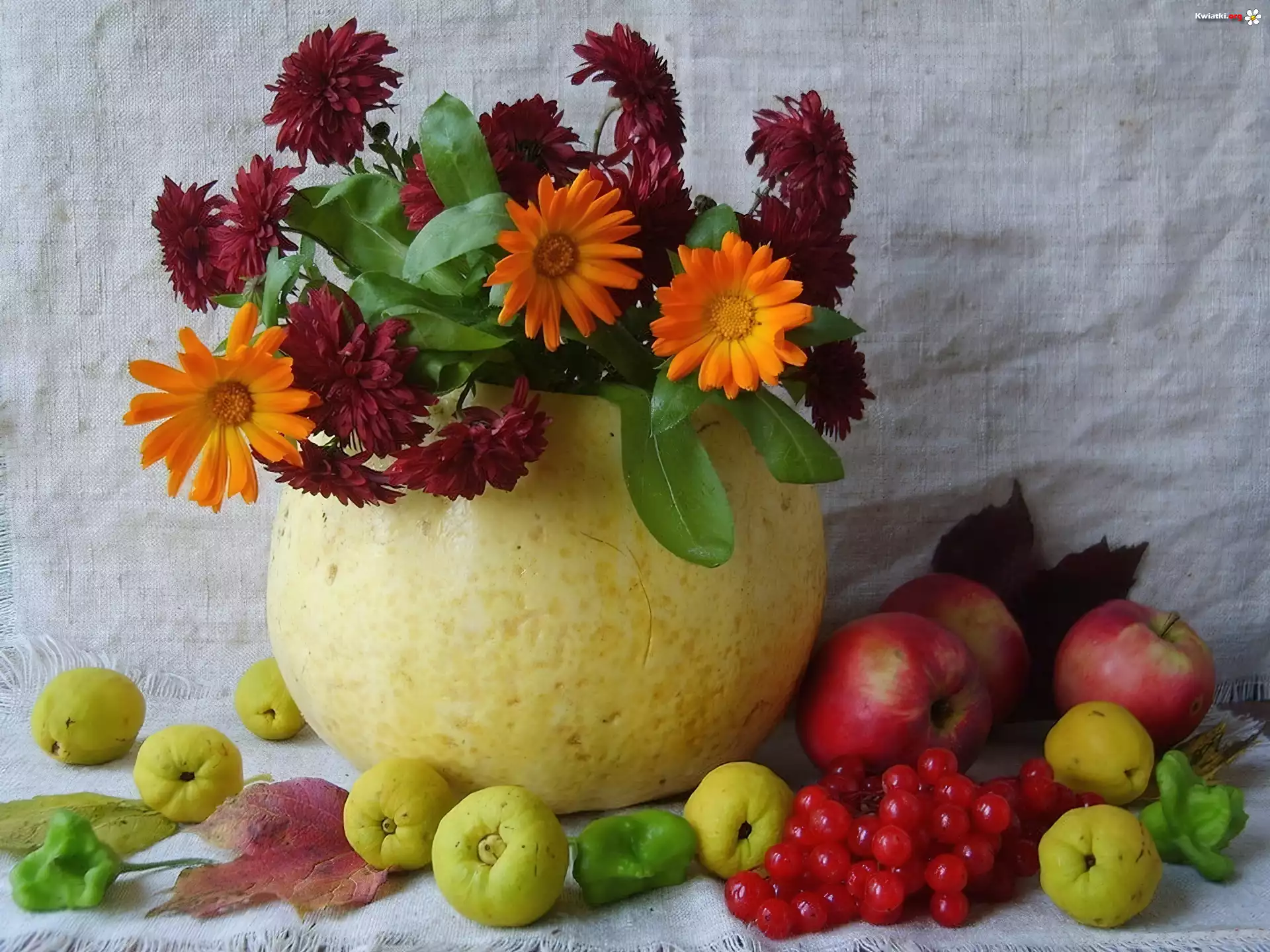 Kwiat Flakon, Kwiaty, Owoce, Pigwy, Jabłka