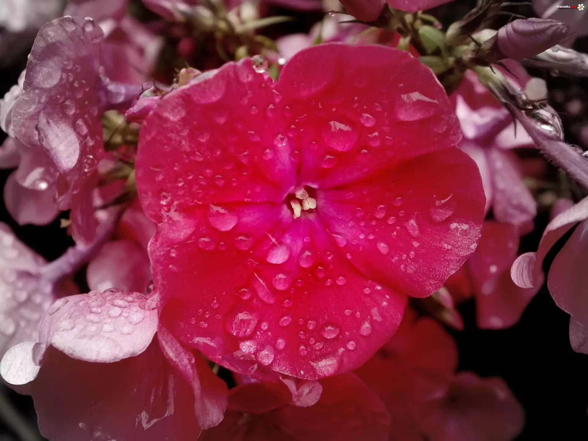 Kwiat Floks, Różowy, Krople, Deszczu