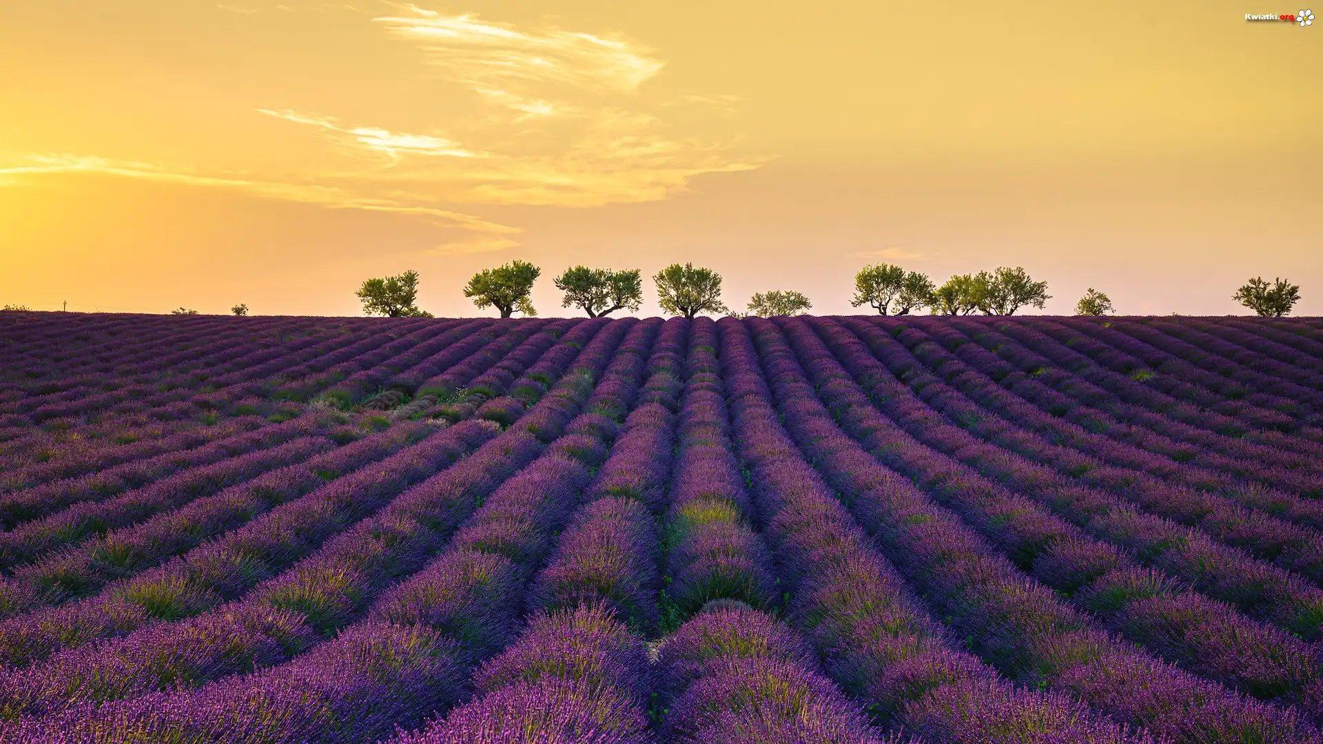Kwiat Francja, Prowansja, Valensole, Pole, Lawenda, Drzewa
