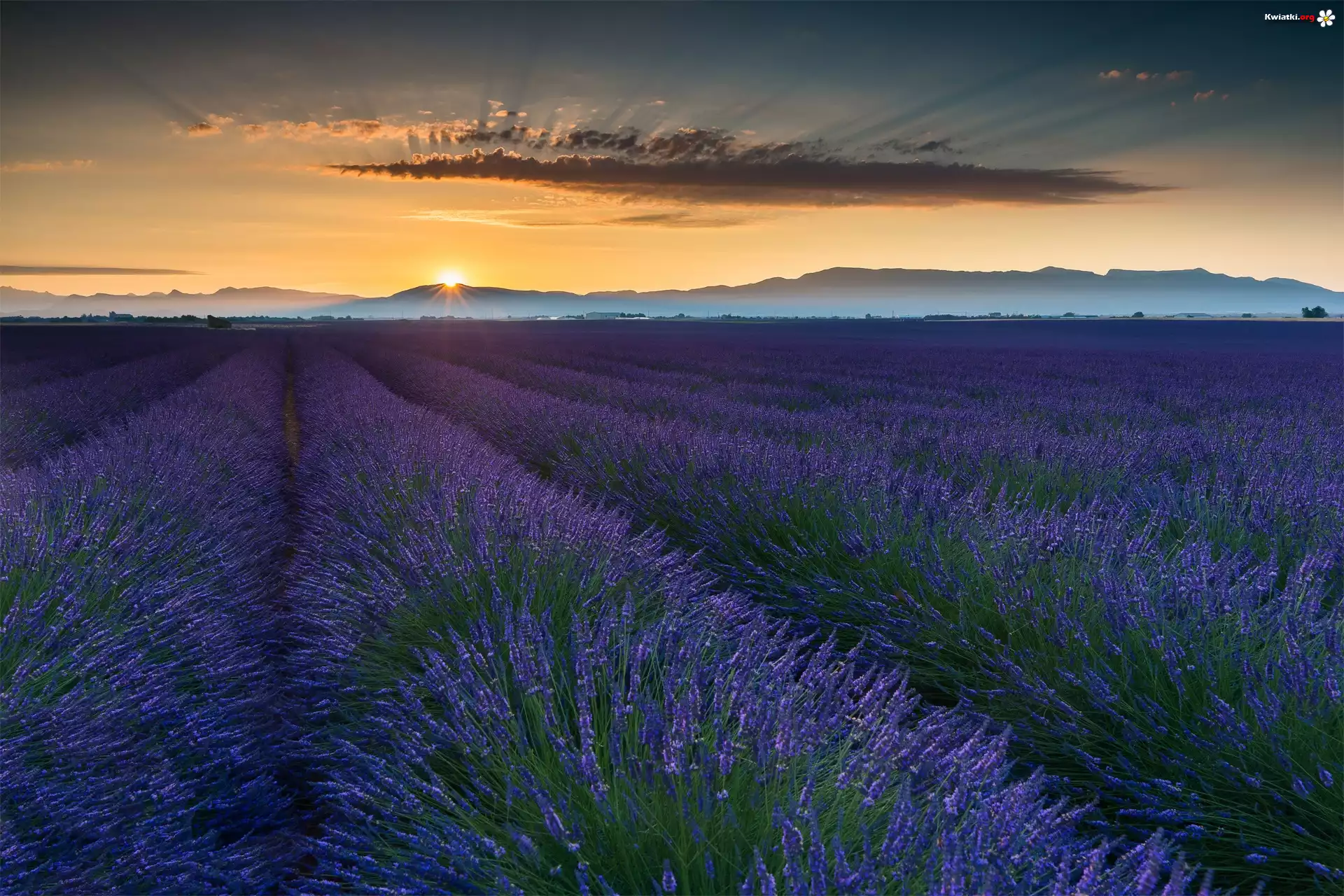 Kwiat Francja, Prowansja, Pole, Lawenda, Zachod, Slonca