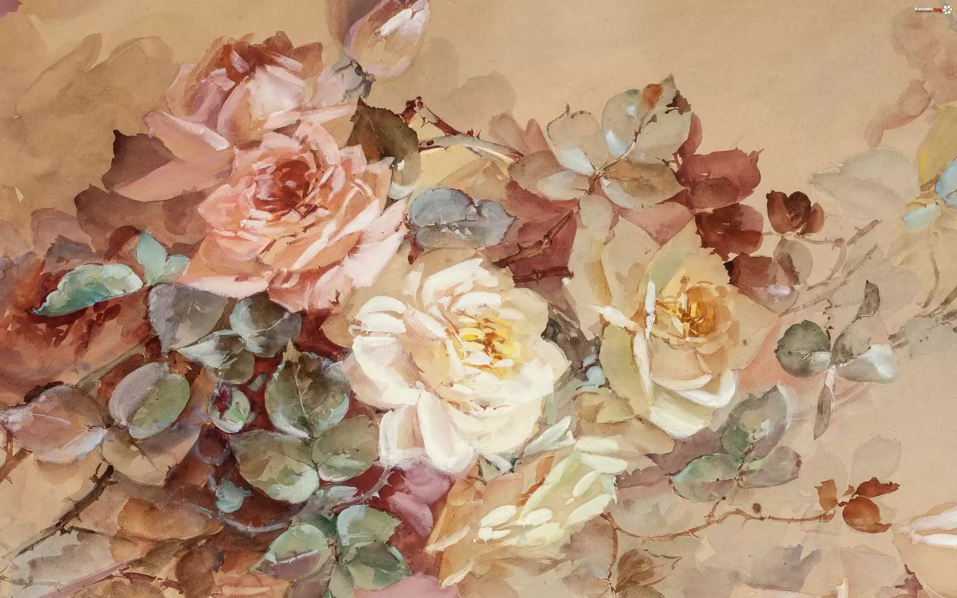Franz Bischoff, Malarstwo, Obraz, Kwiaty, Róże - Zdjęcia
