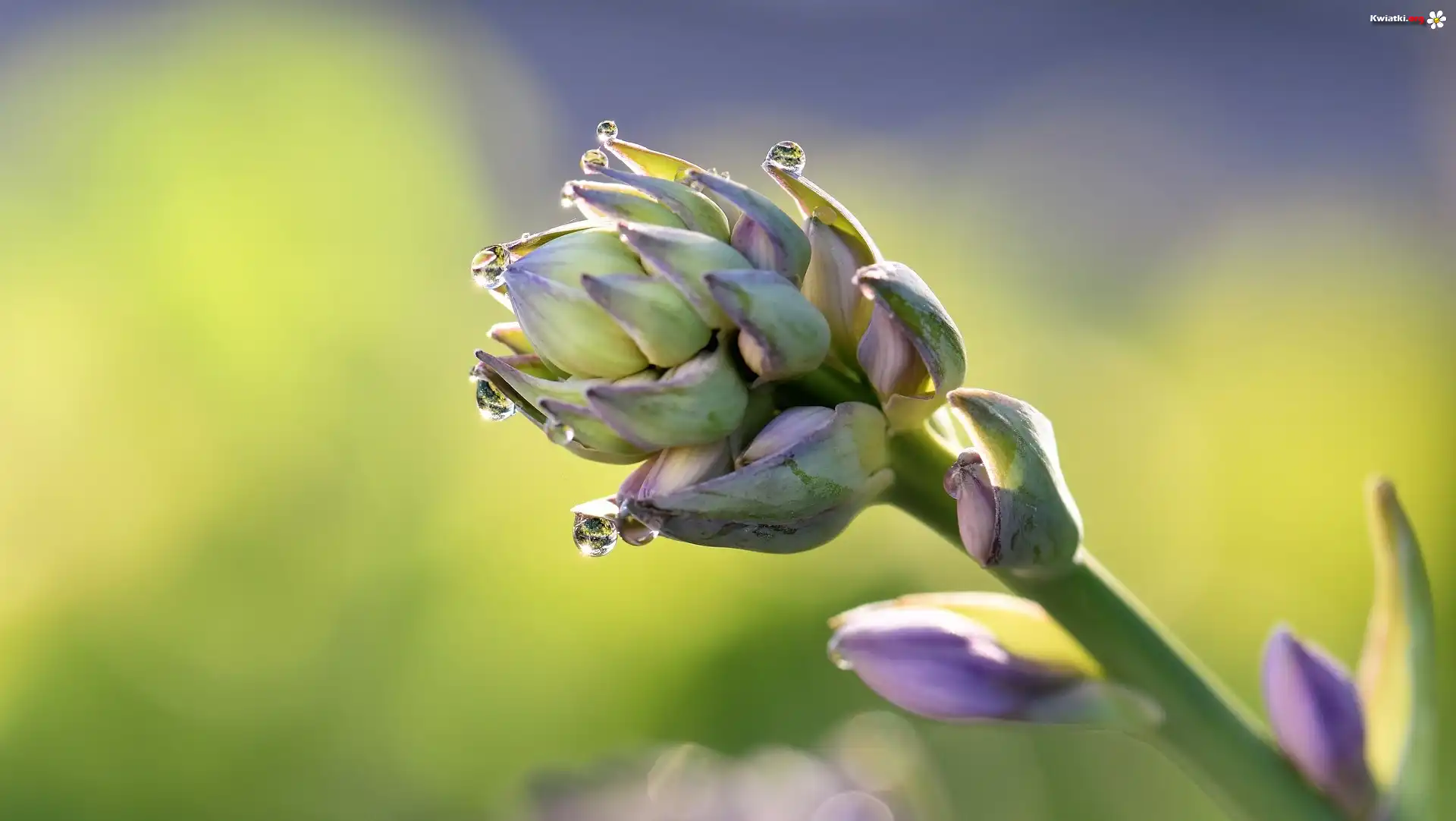 Funkia, Krople, Rozmyte tło - Zdjęcia
