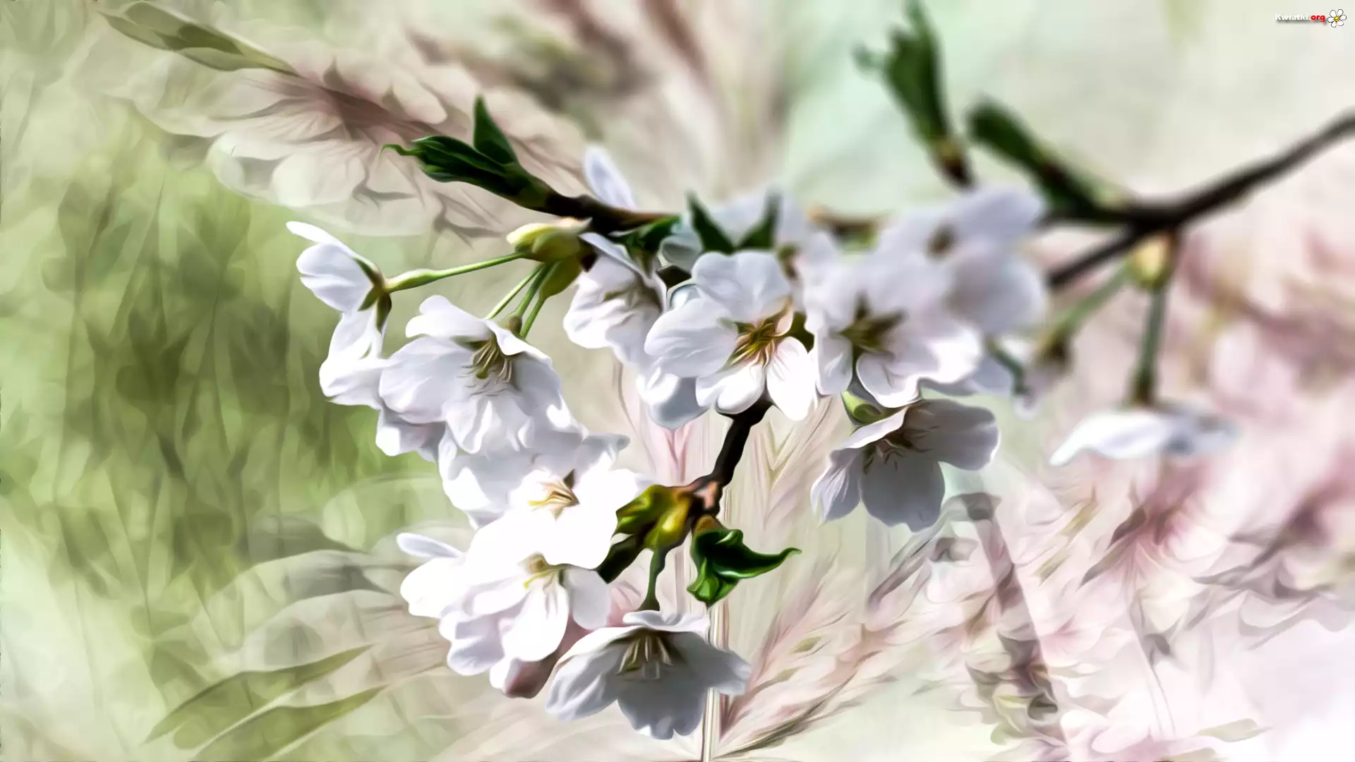 Gałązka, Białe, Kwiaty, Grafika - Zdjęcia