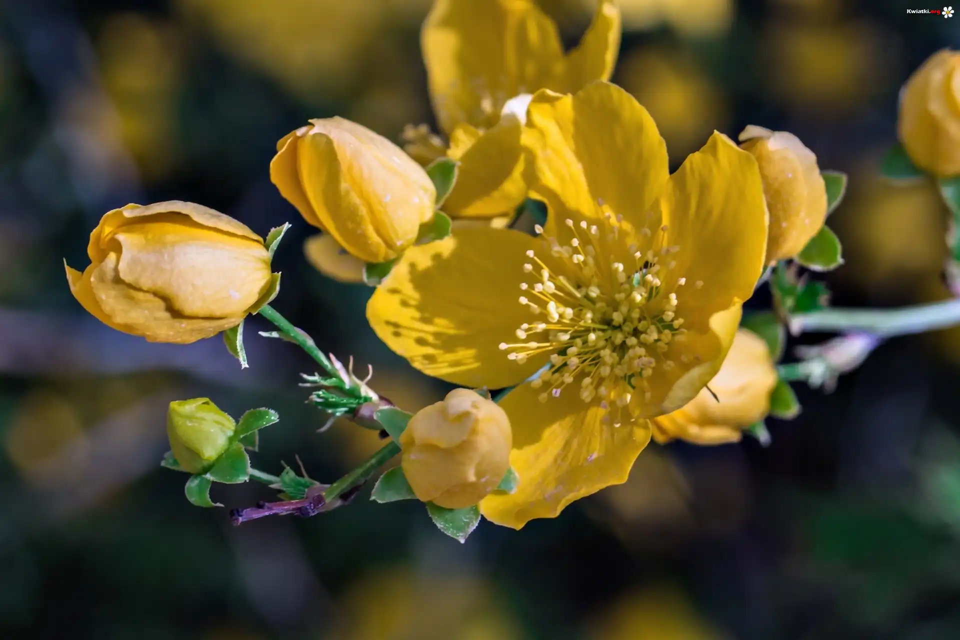Gałązka, Żółte, Kwiaty, Pąki - Zdjęcia