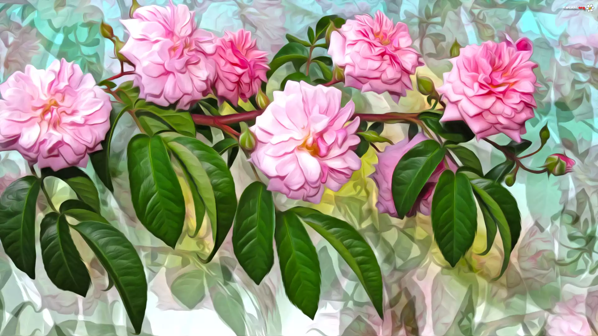 Gałązka, Różowe, Kwiaty, Grafika - Zdjęcia