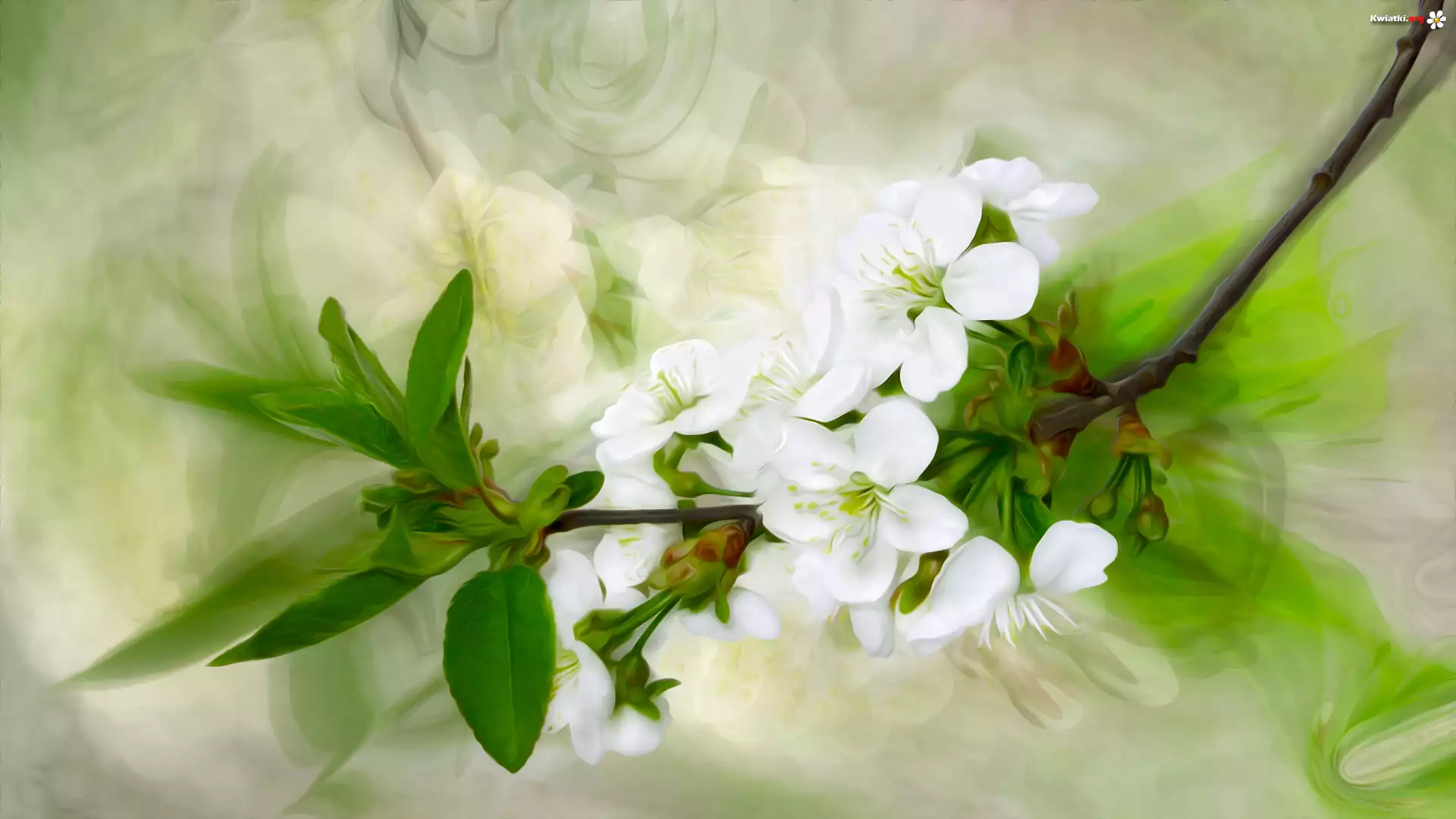 Gałązka, Kwiaty, Listki, Grafika - Zdjęcia