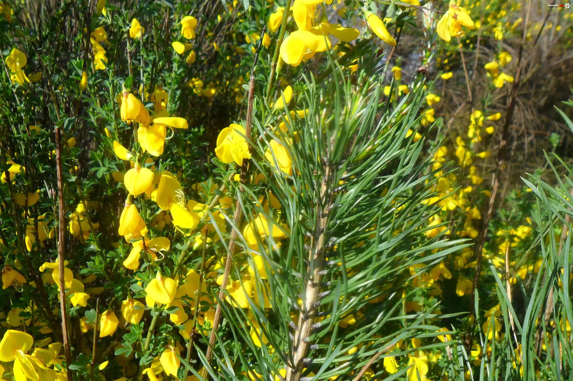 Kwiat Gałązka, Sosny, Żółte, Kwiaty