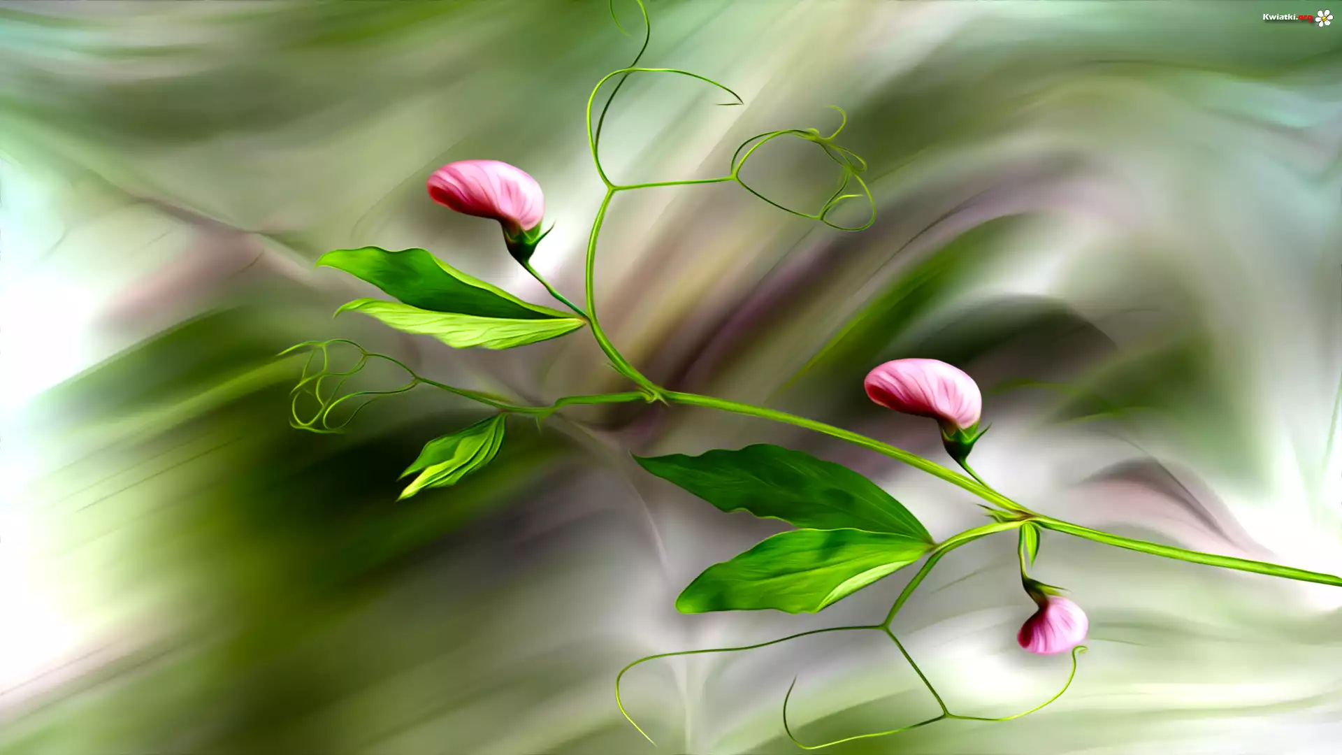 Gałązka, Groszek pachnący, Liście, Pąki, Grafika - Zdjęcia