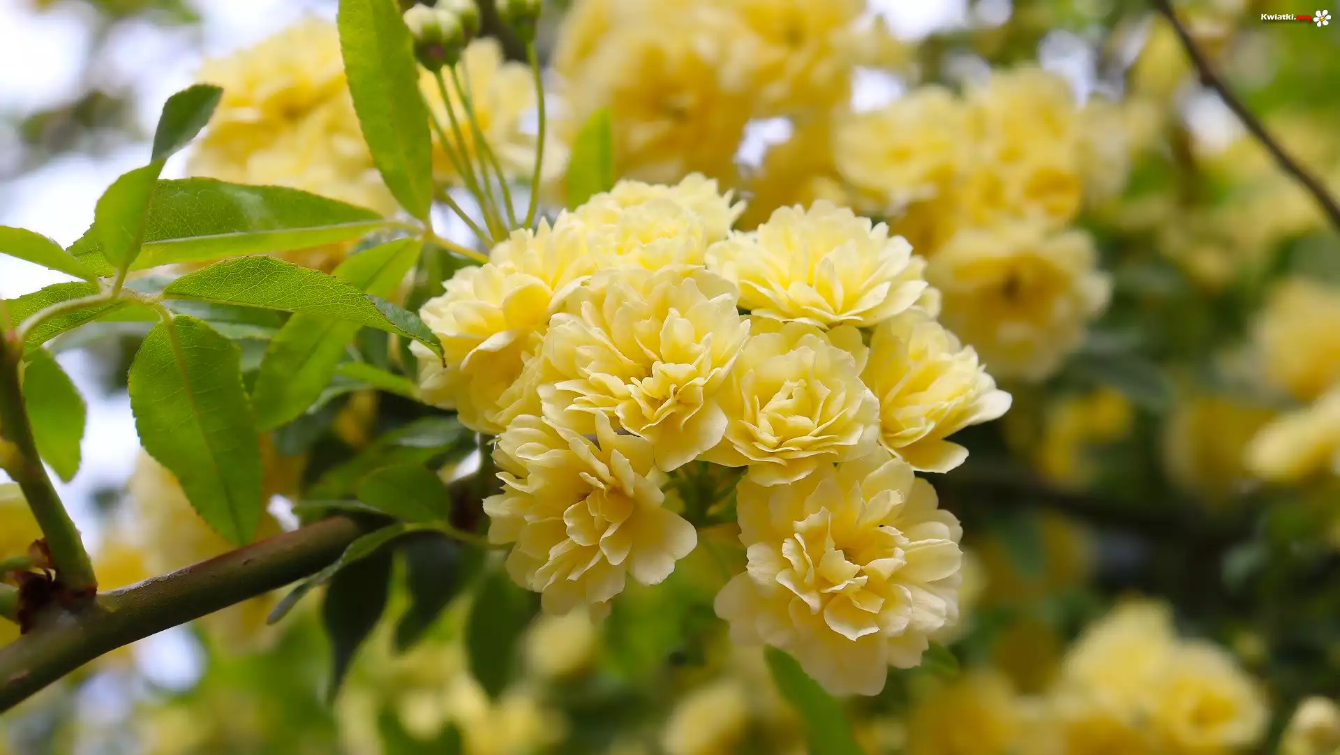 Żółte, Kwiaty, Róża, Gałązka - Zdjęcia