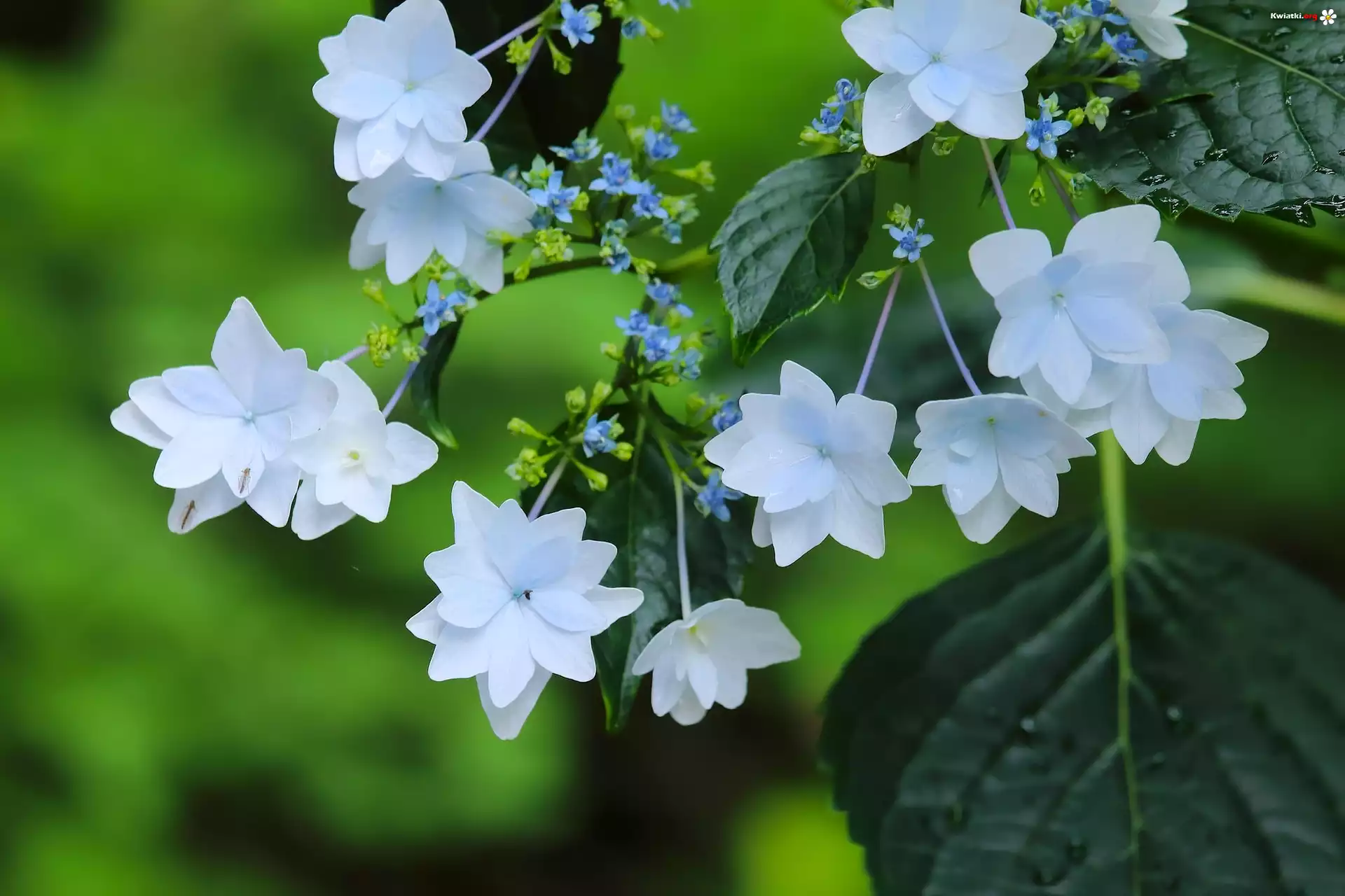 Gałązki, Białe, Kwiaty, Hortensja piłkowana - Zdjęcia