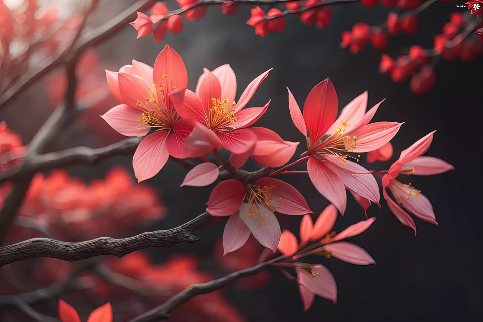 Kwiat Gałązki, Czerwone, Kwiaty