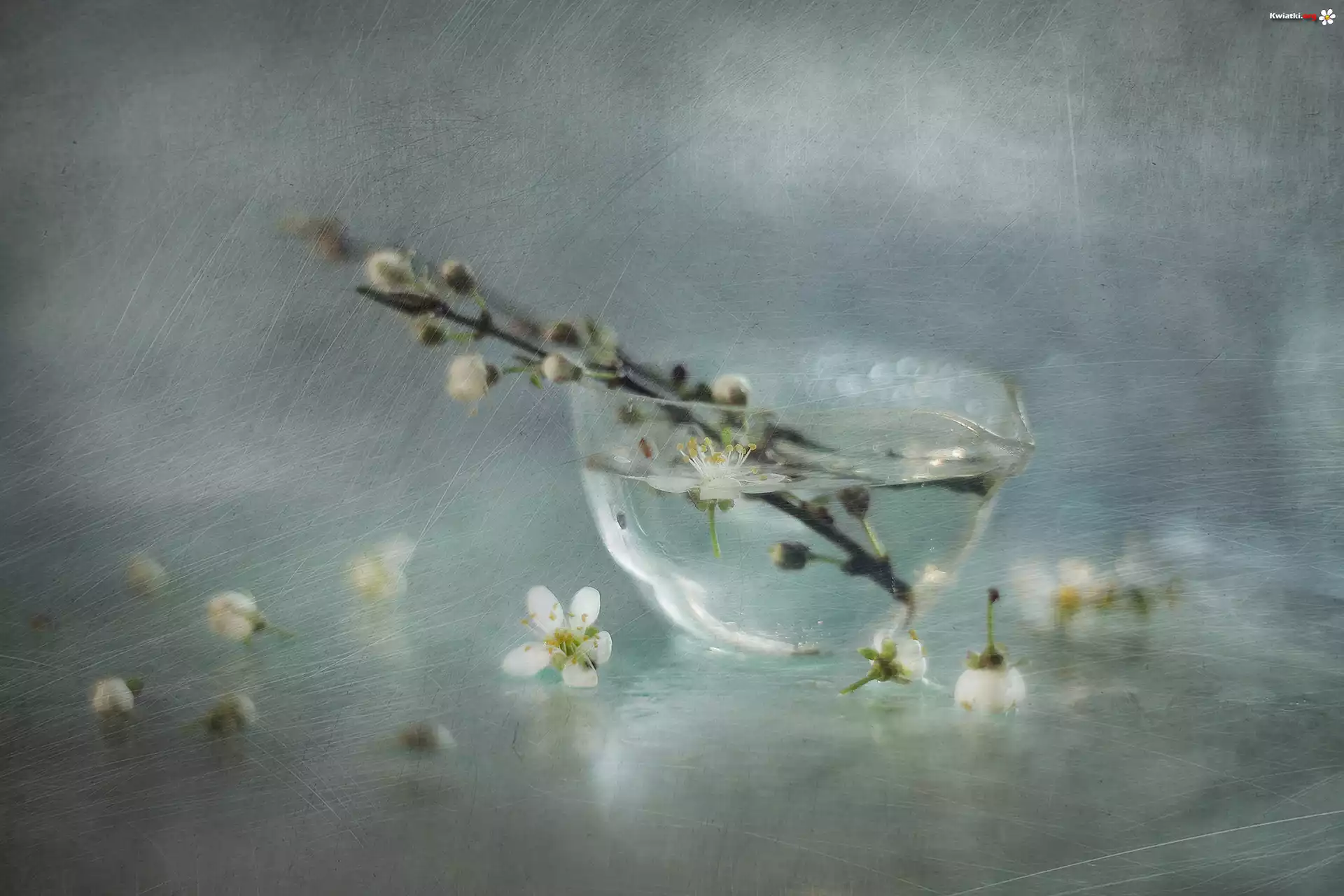 Gałązki, Szklane, Naczynie, Białe, Kwiaty, Grafika - Zdjęcia
