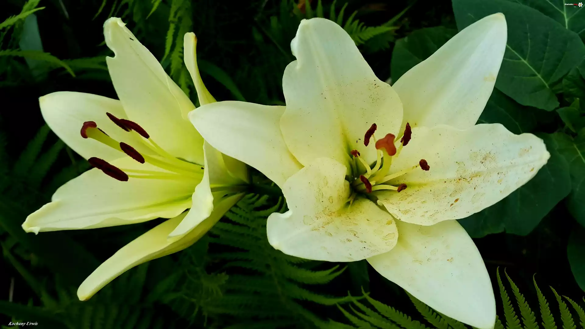 Lilie, Gałązki, Paproci - Zdjęcia