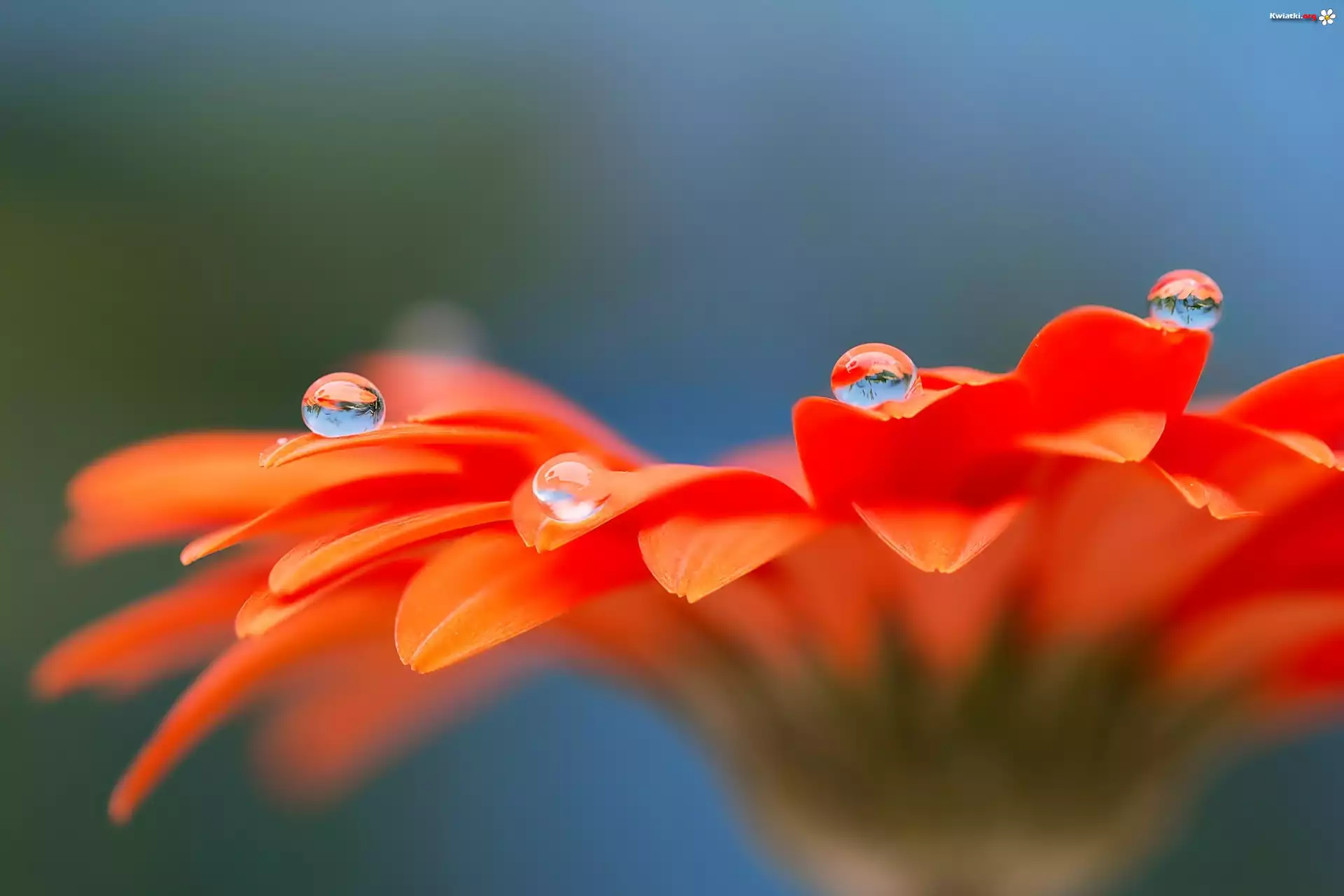Gerbera, Krople, Wody, Makro - Zdjęcia