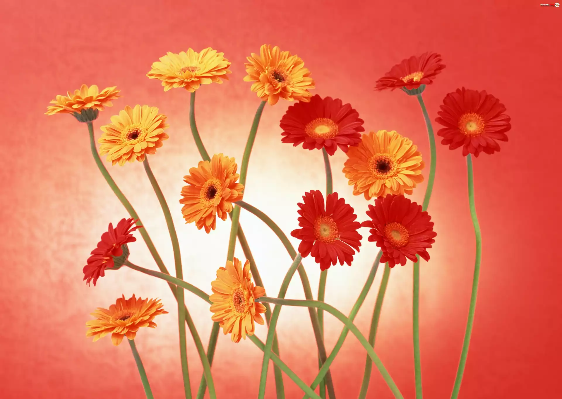 Żółto, Czerwone, Gerbery, Łodygi - Zdjęcia