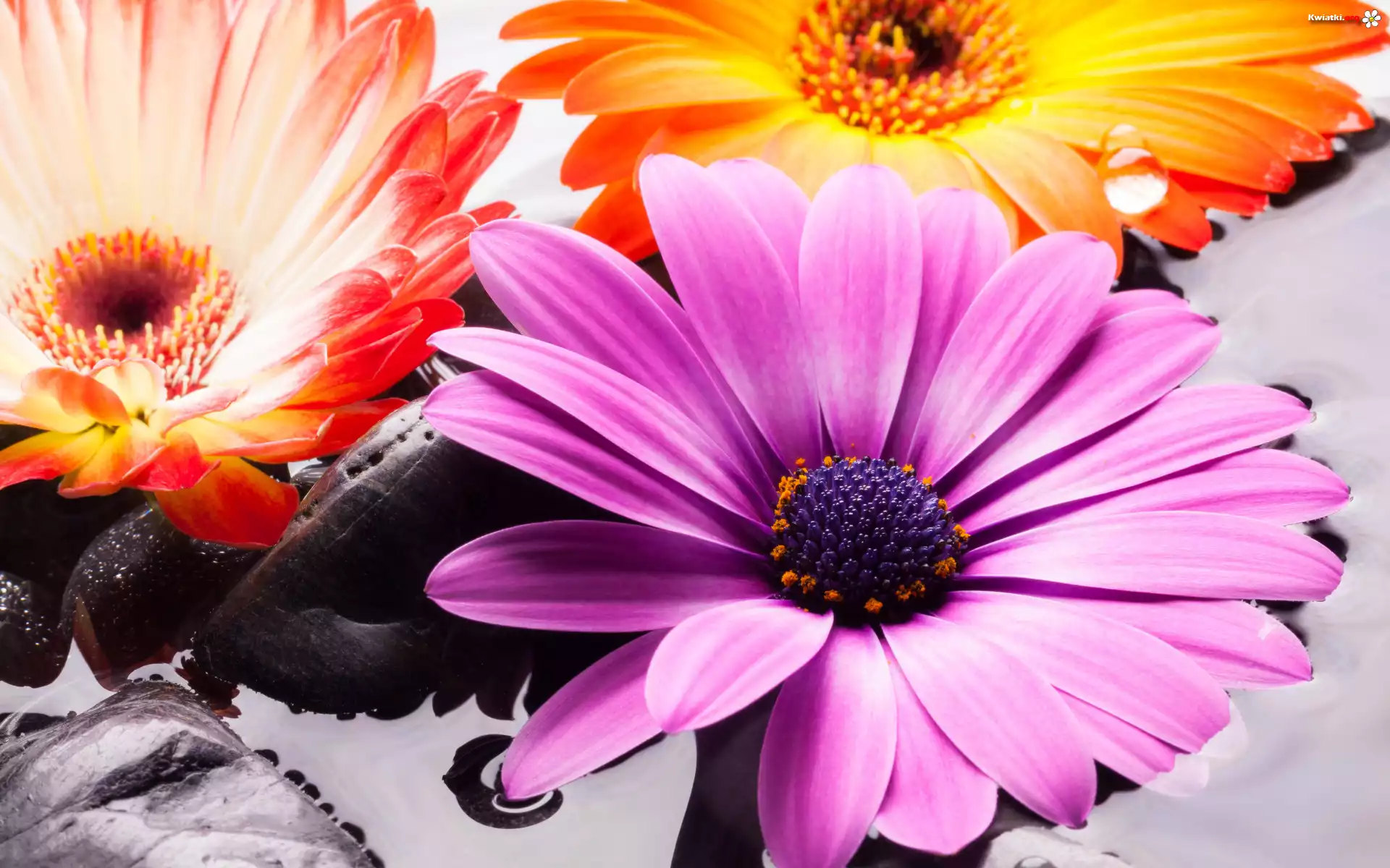 Kwiat Kolorowe, Kwiaty, Trzy, Gerbery