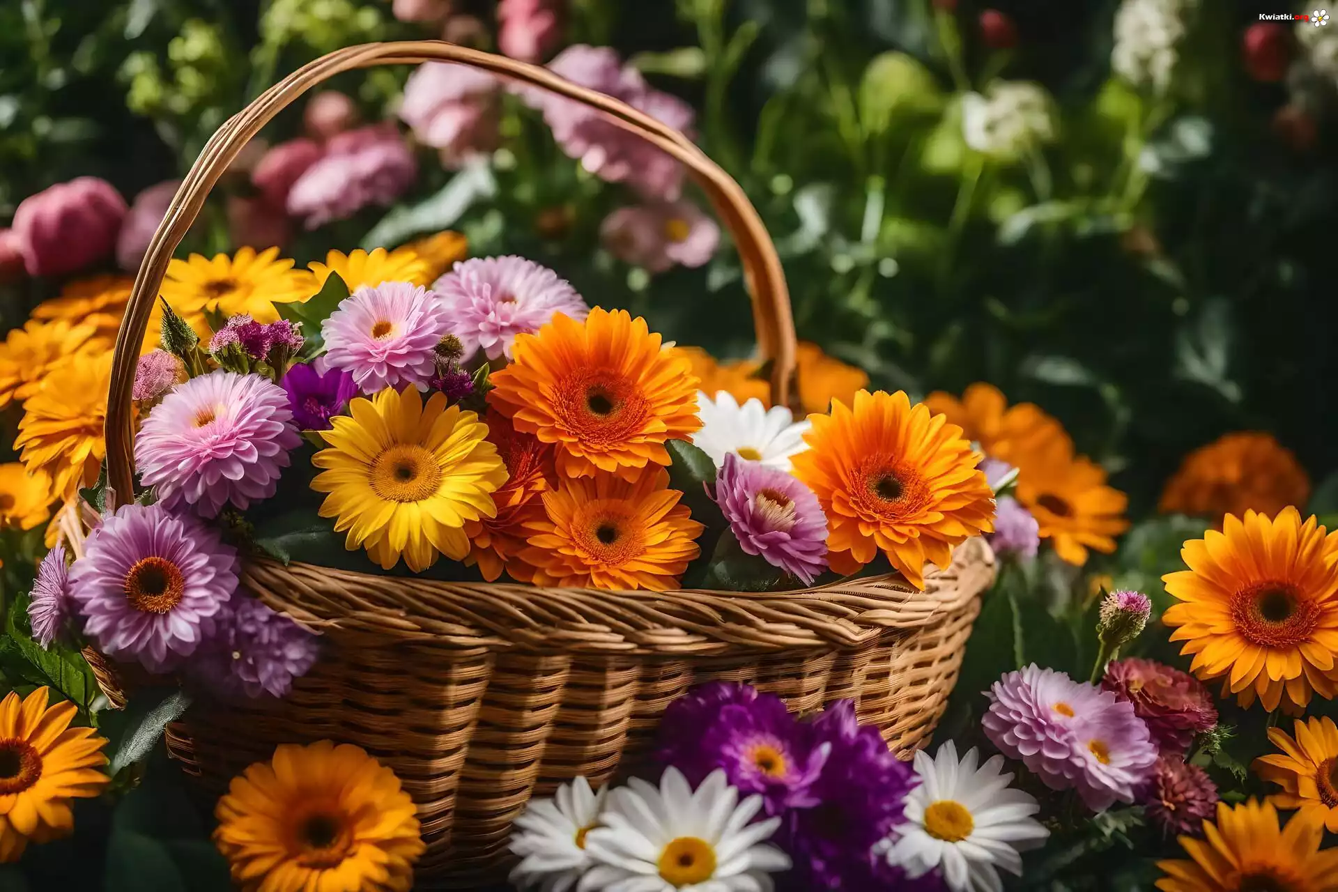 Kolorowe, Kwiaty, Astry, Gerbery, Rumianki, Koszyk - Zdjęcia