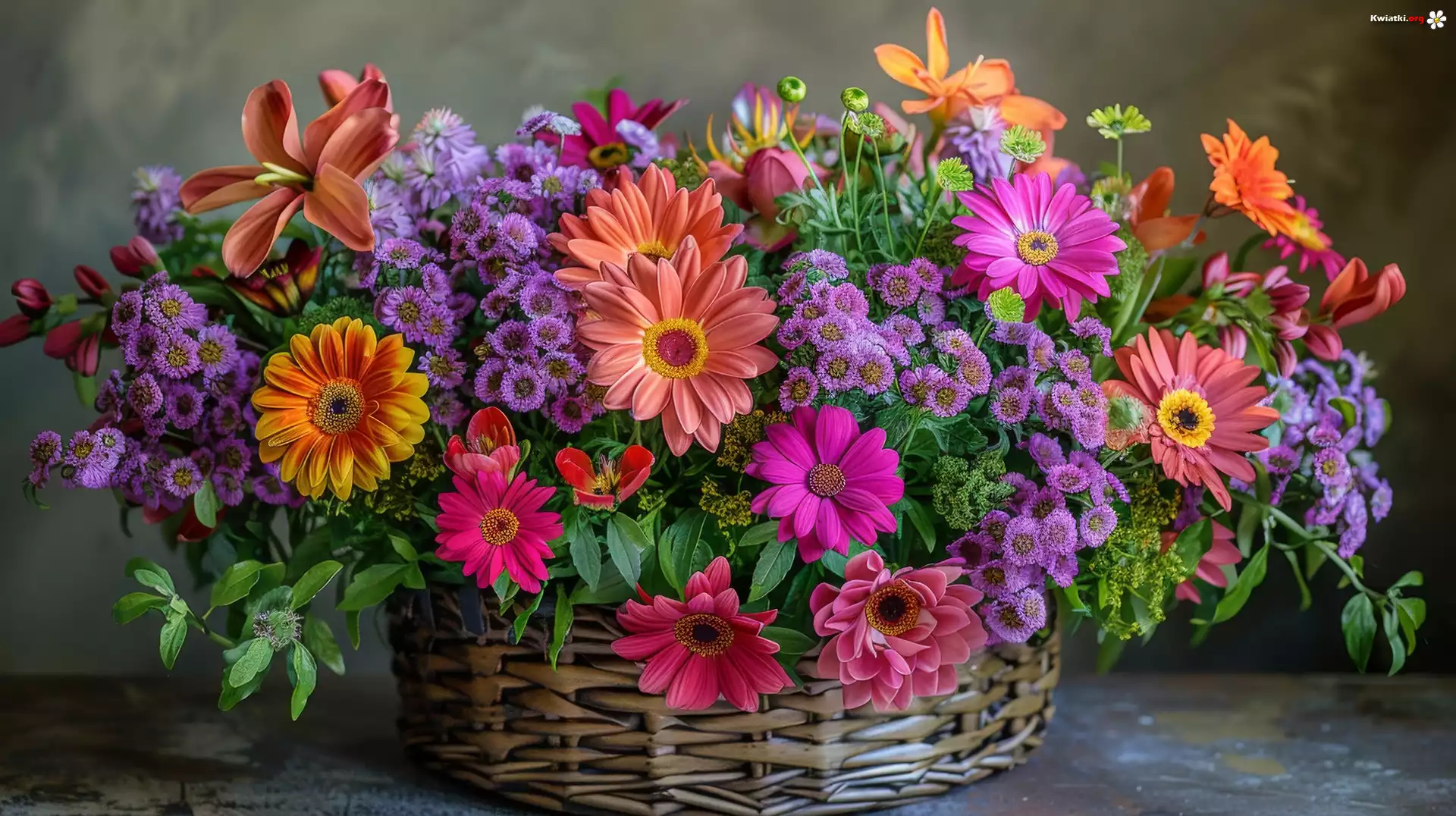 Bukiet, Kolorowe, Kwiaty, Gerbery, Astry, Koszyk - Zdjęcia