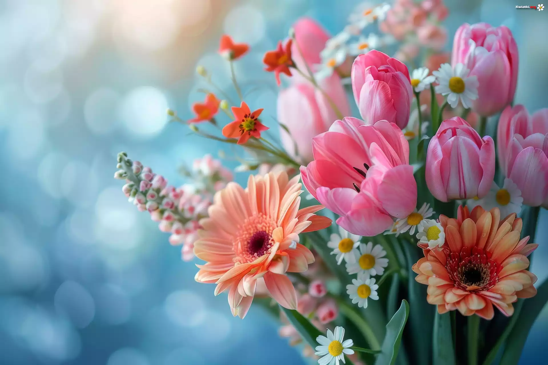 Kwiat Tulipany, Gerbery, Kwiaty, Bukiet, Grafika