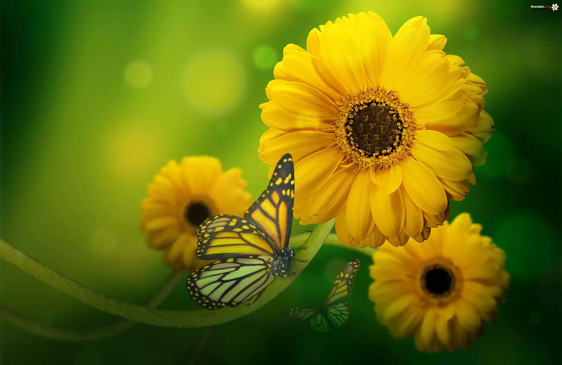 Kwiat Żółte, Gerbery, Motyle