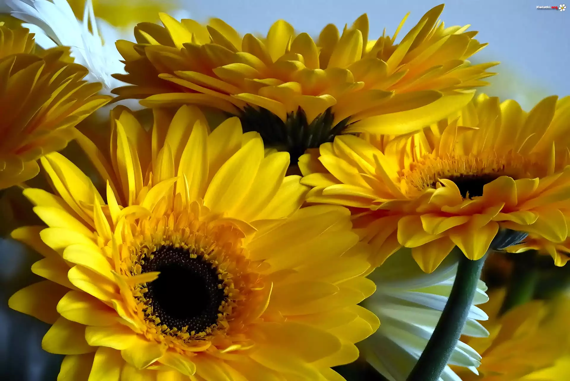 Biała, Gerbera, Czarne, Tło Pomarańczowy, Gerber Białe, Czerwone, Gerbery Kwiatek, Gerber, Fioletowy Kwiat, Gerbera Żółty, Gerber Gerber Kolorowe, Gerbery Czerwone, Gerbery Dwie, Gerbery Filiżanka, Kawy, Gerber Bukiet, Wstążka Żółte, Czerwone, Gerbery Kolorowe, Gerbery