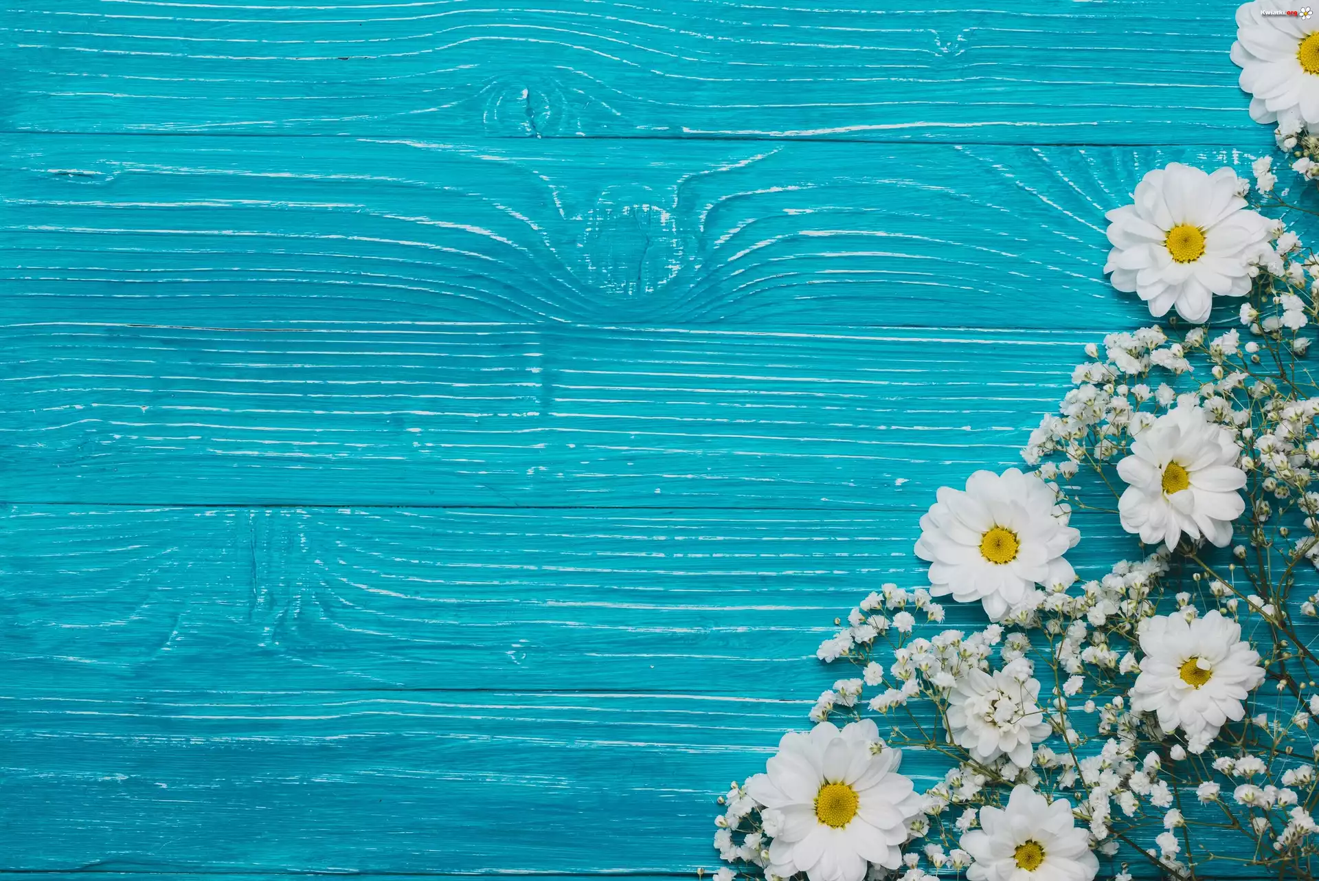 Chryzantemy, Gipsówka, Deski - Zdjęcia