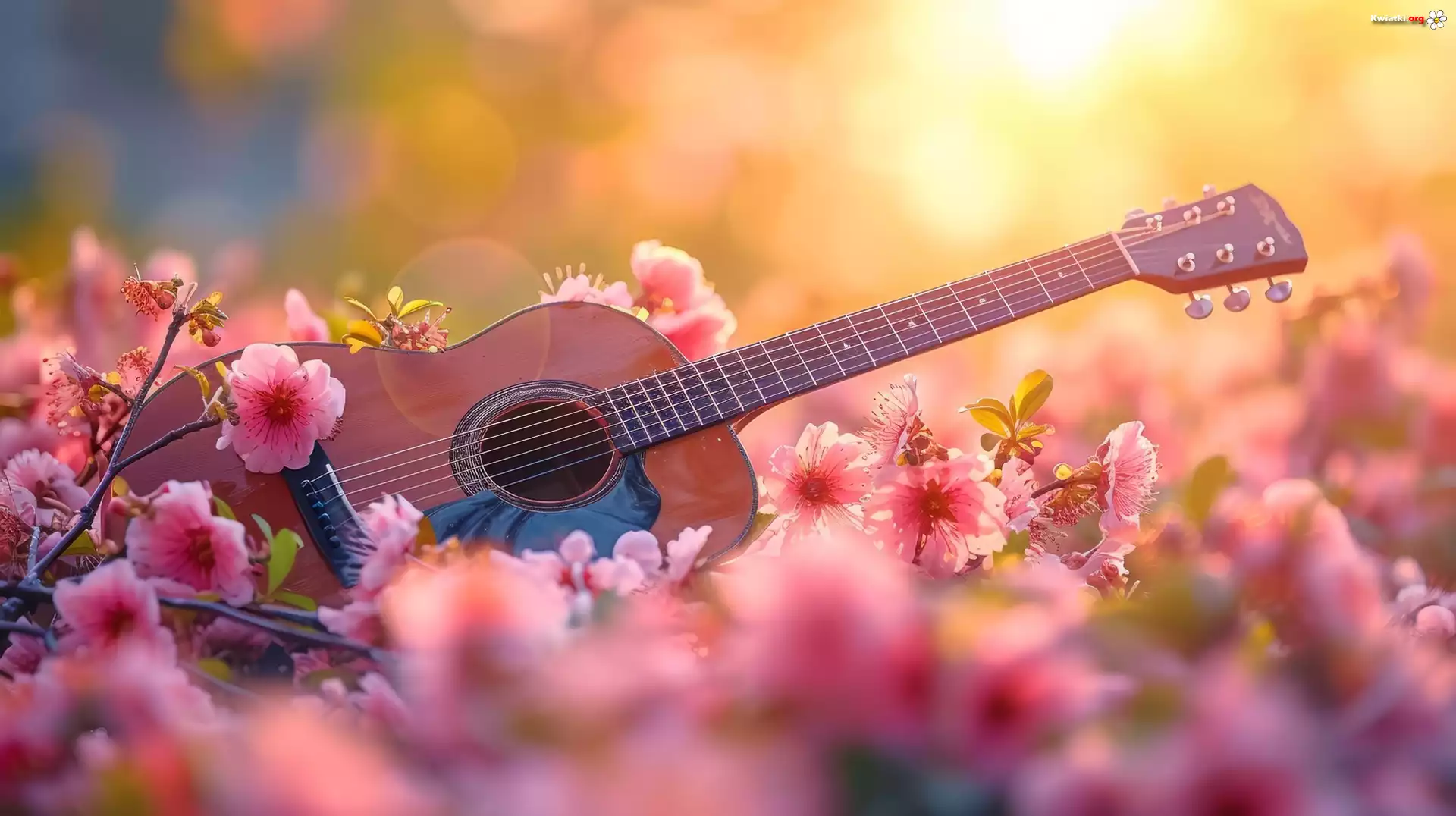 Gitara, Różowe, Kwiaty - Zdjęcia