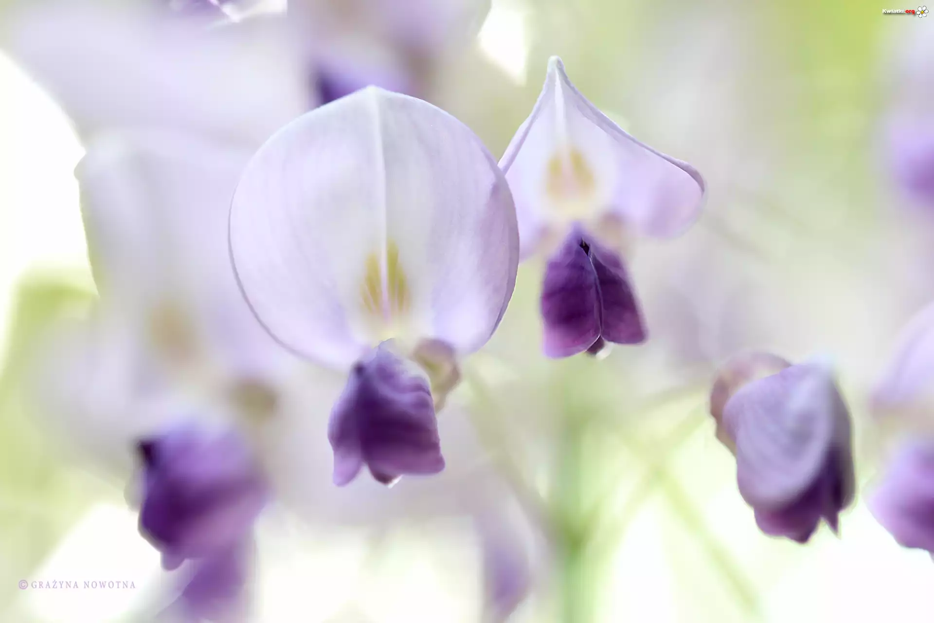 Kwiat Glicynia, Biało, Fioletowe, Kwiaty