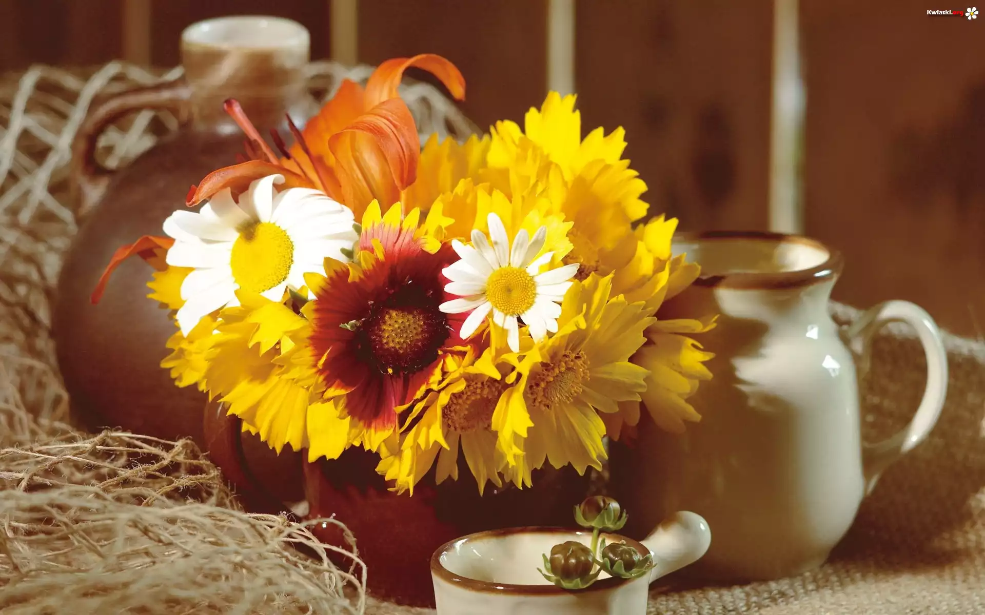 Kwiat Gliniane, Naczynia, Żółte, Kwiaty