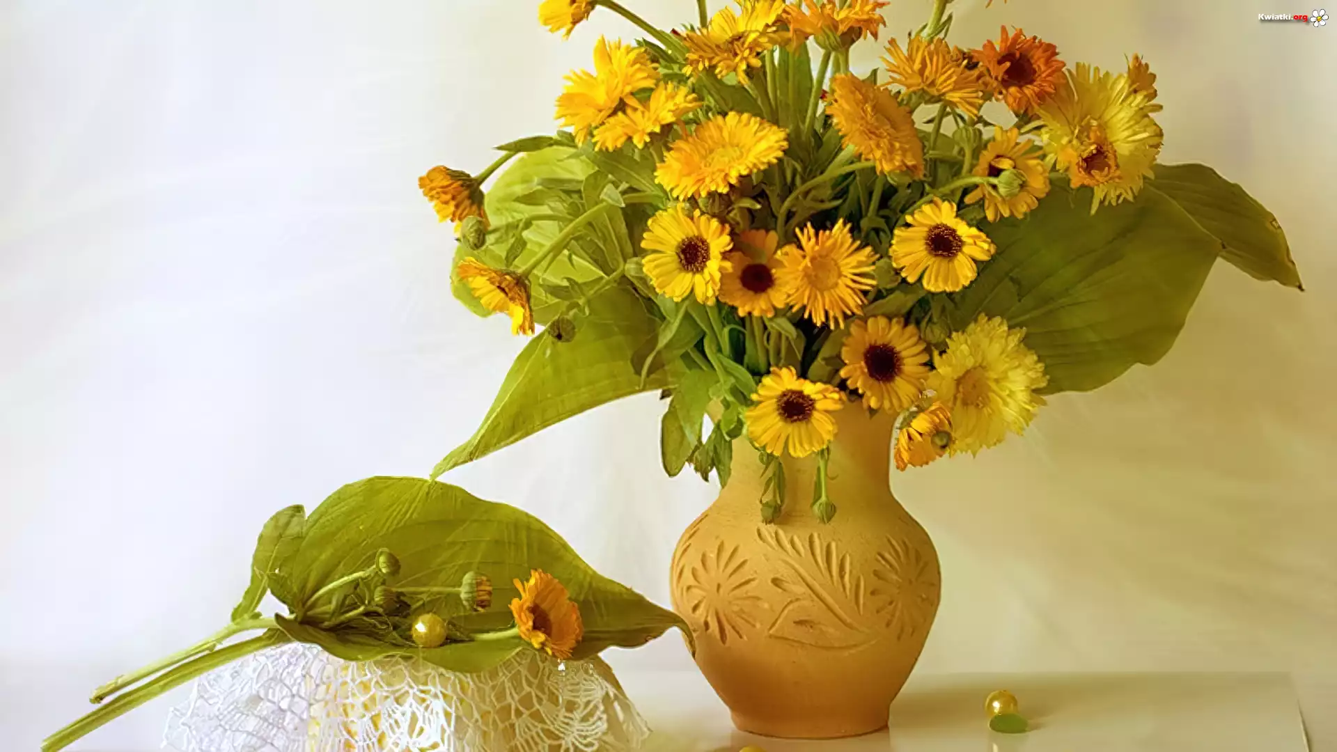 Kwiat Gliniany, Wazon, Żółte, Nagietki