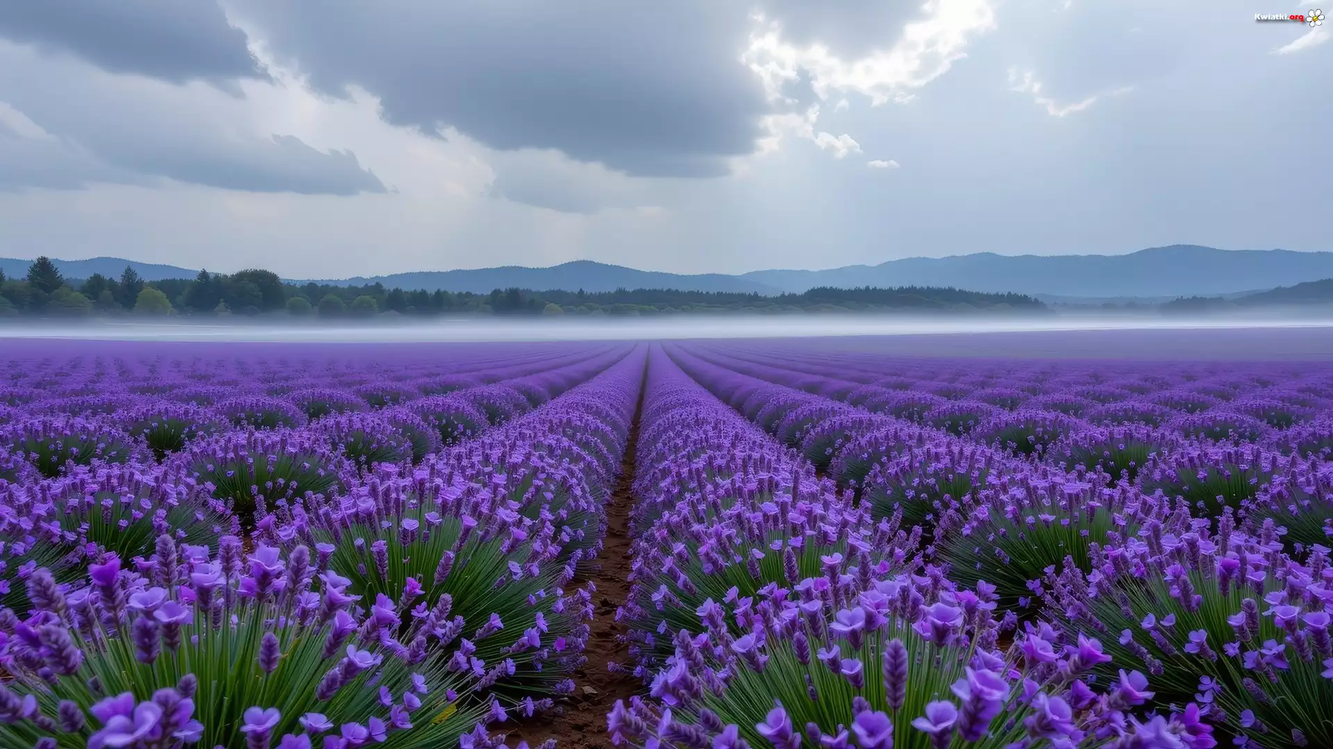 Lawenda, Pole, Mgła, Góry, Drzewa, AI - Zdjęcia