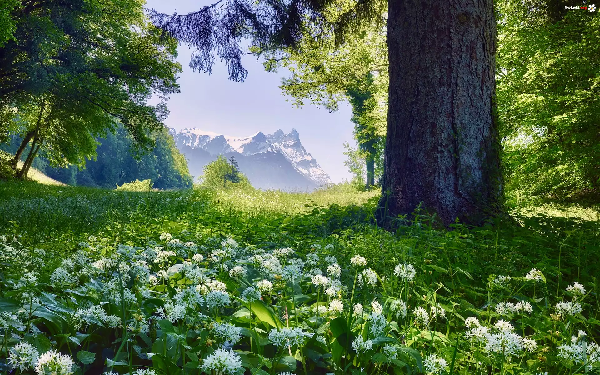Drzewo, Góry, Czosnek niedźwiedzi, Wiosna - Zdjęcia
