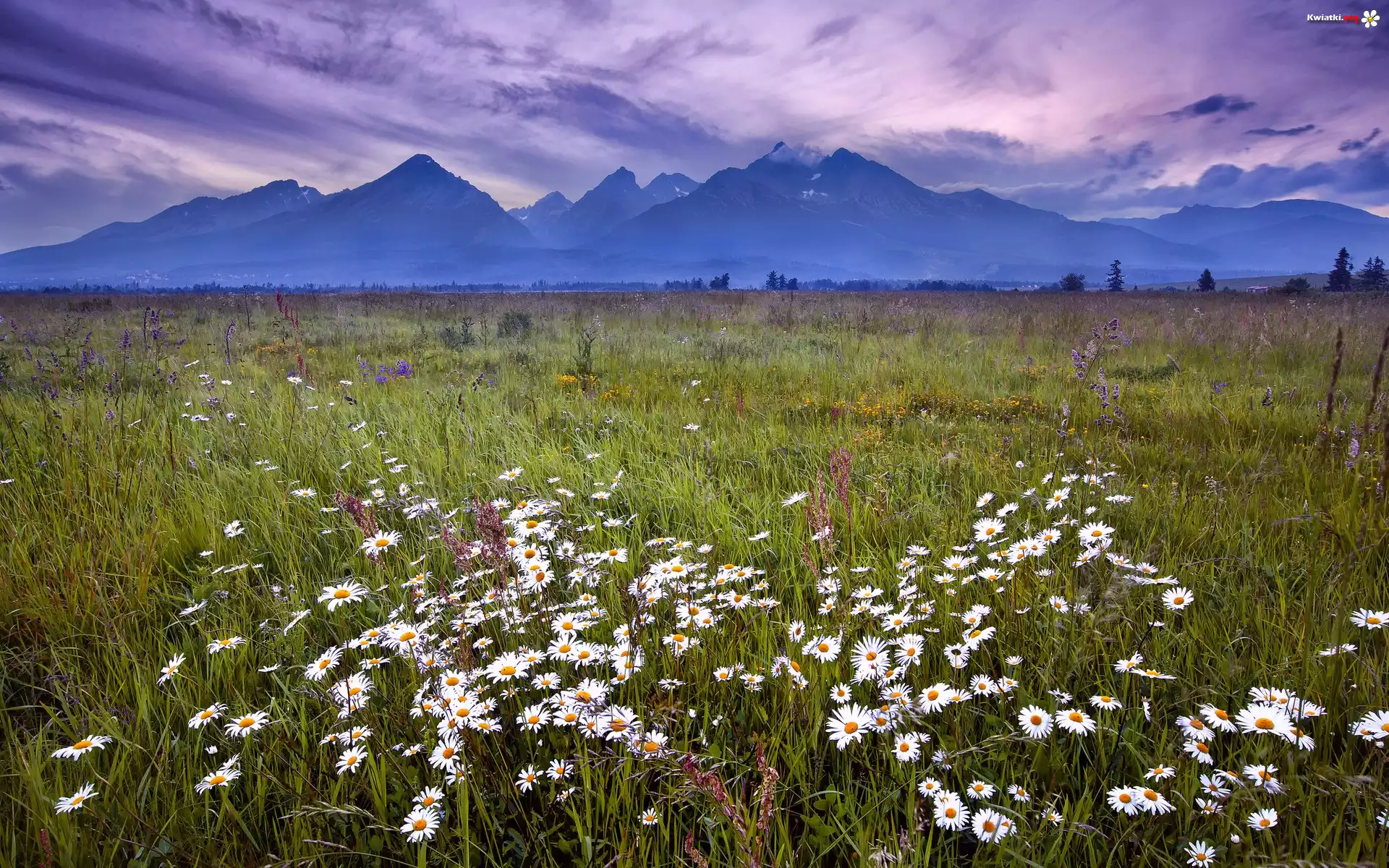 Łąka, Rumianki, Trawa, Góry, Chmury - Zdjęcia