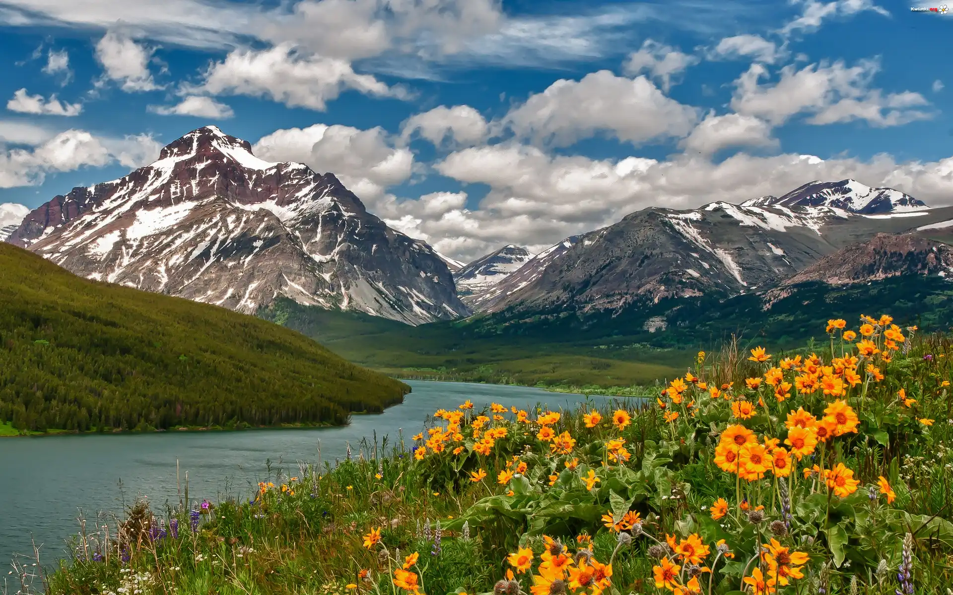 Rzeka, Góry, Kwiatki - Zdjęcia