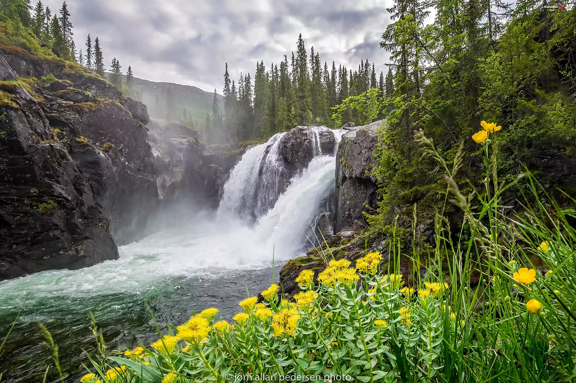 Góry, Las, Wodospad, Rzeka, Kwiatki - Zdjęcia