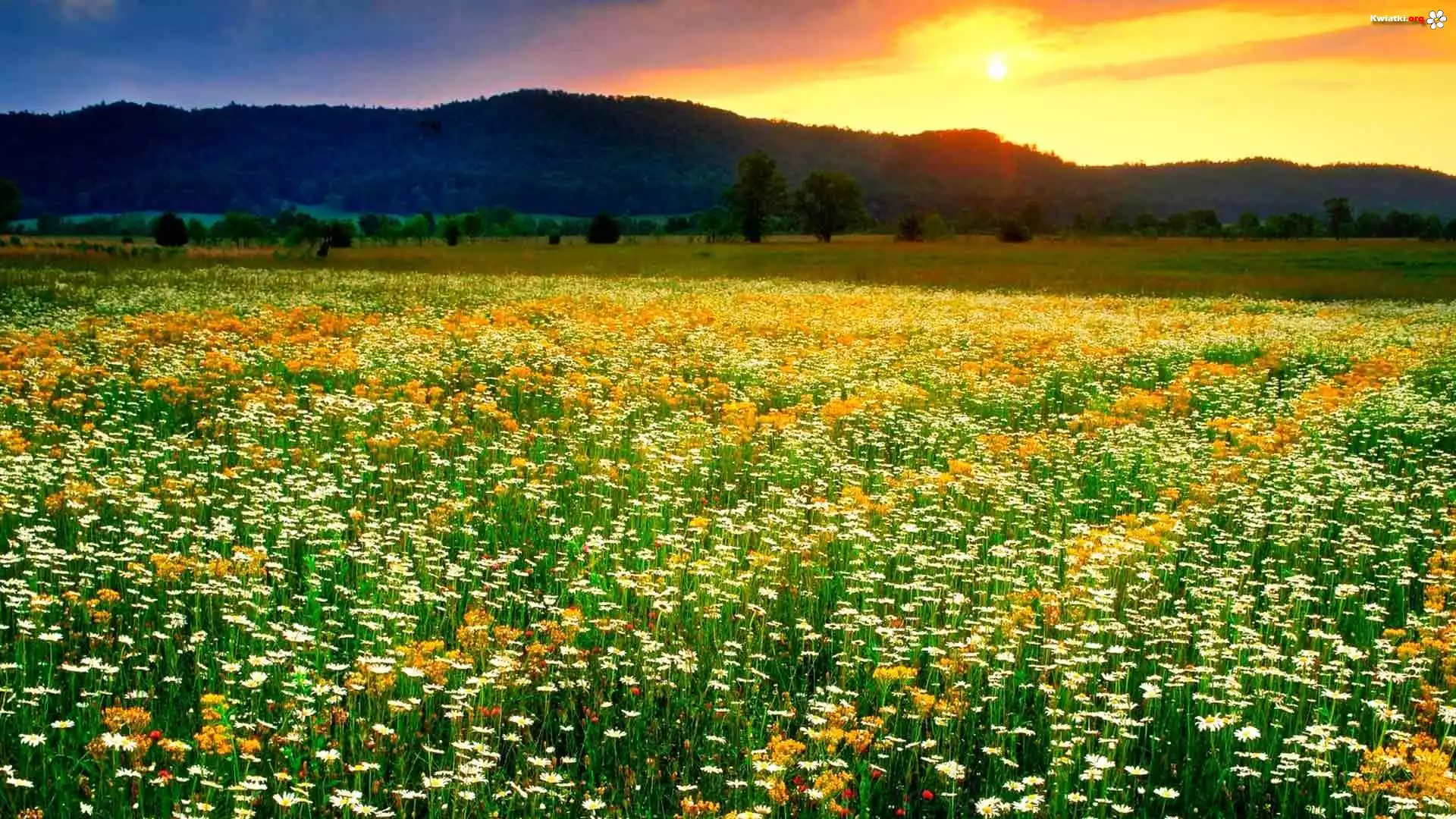 Kwiat Góry, Łąka, Zachód Słońca, Kwiatki