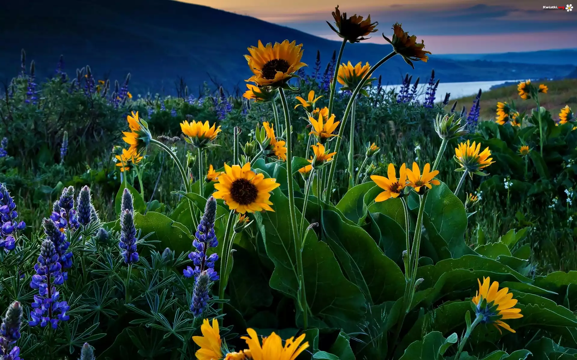Góry, Kwiaty, Słoneczniki, Łubin - Zdjęcia