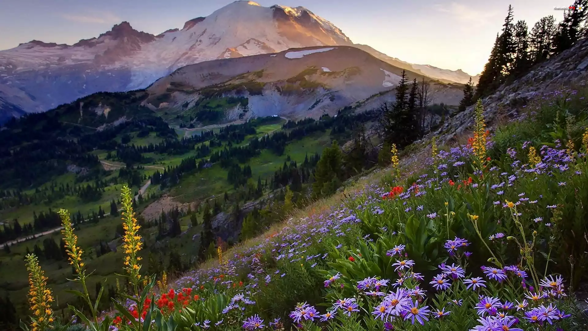 Kwiat Góry, Lasy, Łąka, Kwiaty, Światło, Cień