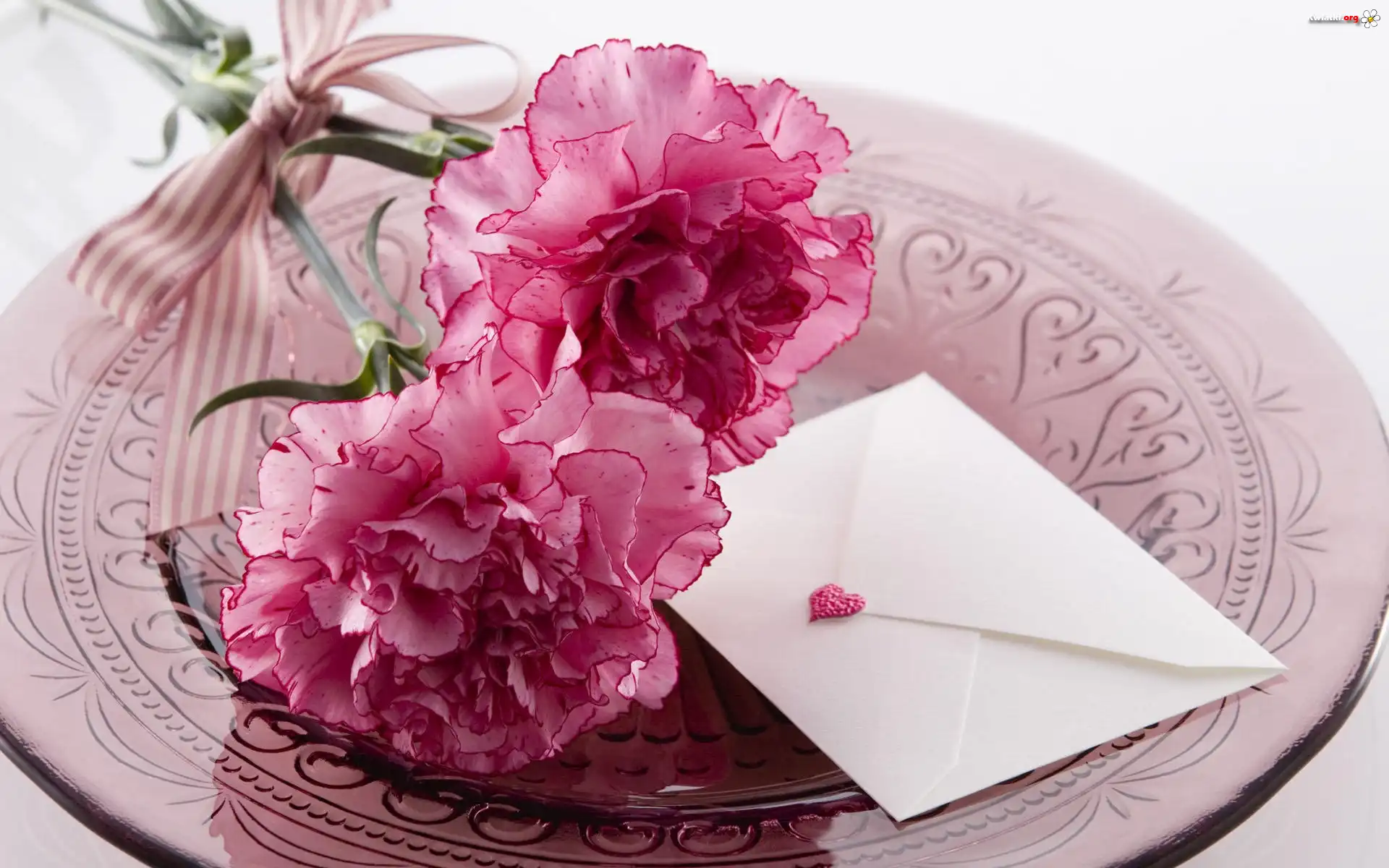 Goździki, Wstążka, Talerzyk, Koperta, Serduszko - Zdjęcia