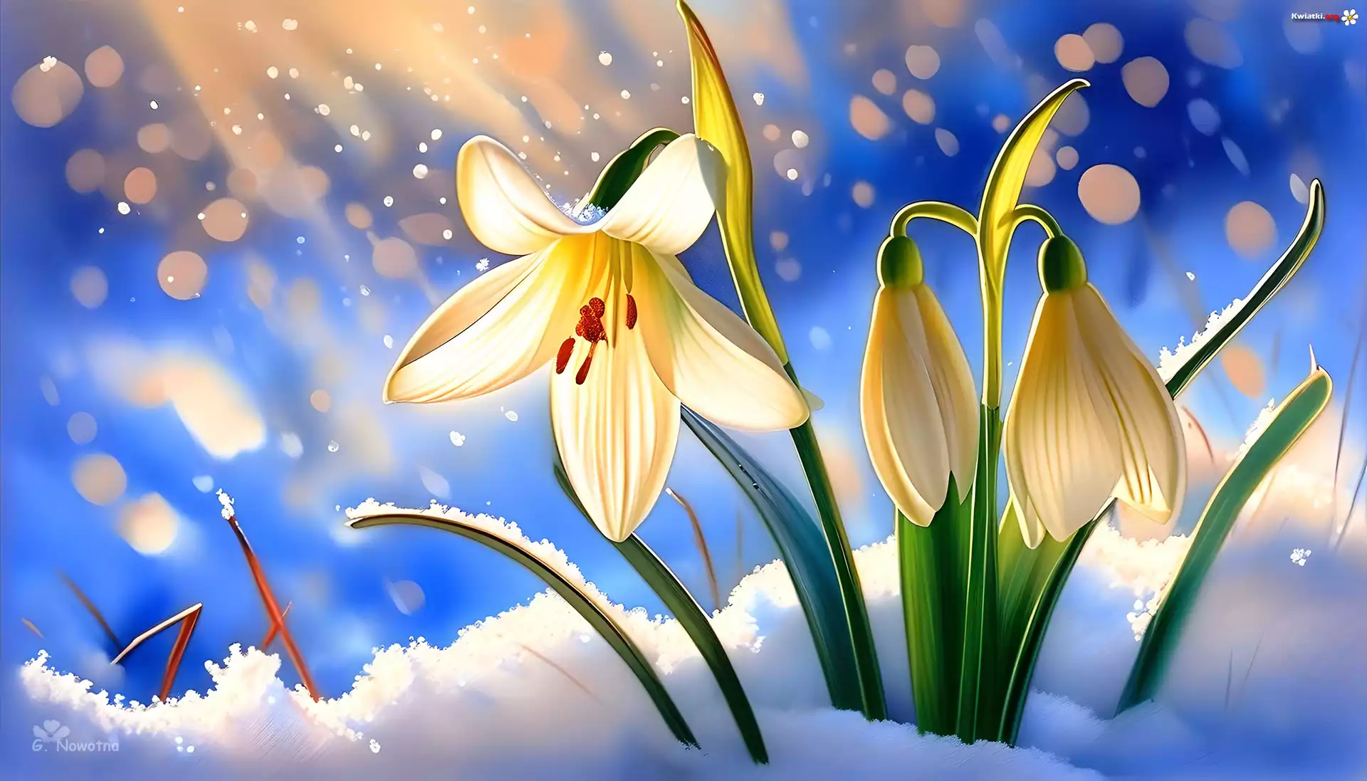 Białe, Przebiśniegi, Kwiaty, Grafika - Zdjęcia