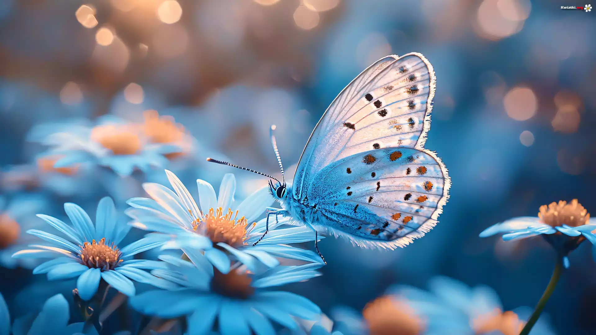 Białe, Kwiaty, Motyl, Grafika - Zdjęcia