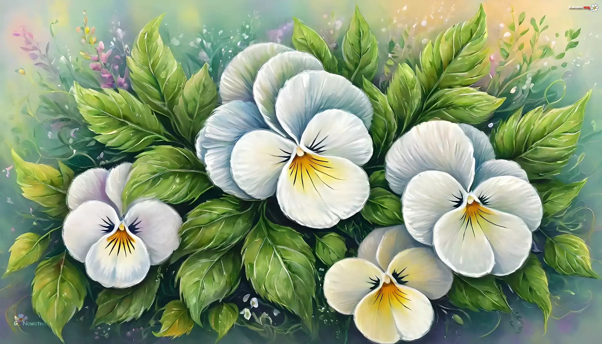 Bratki, Liście, Kwiaty, Grafika - Zdjęcia