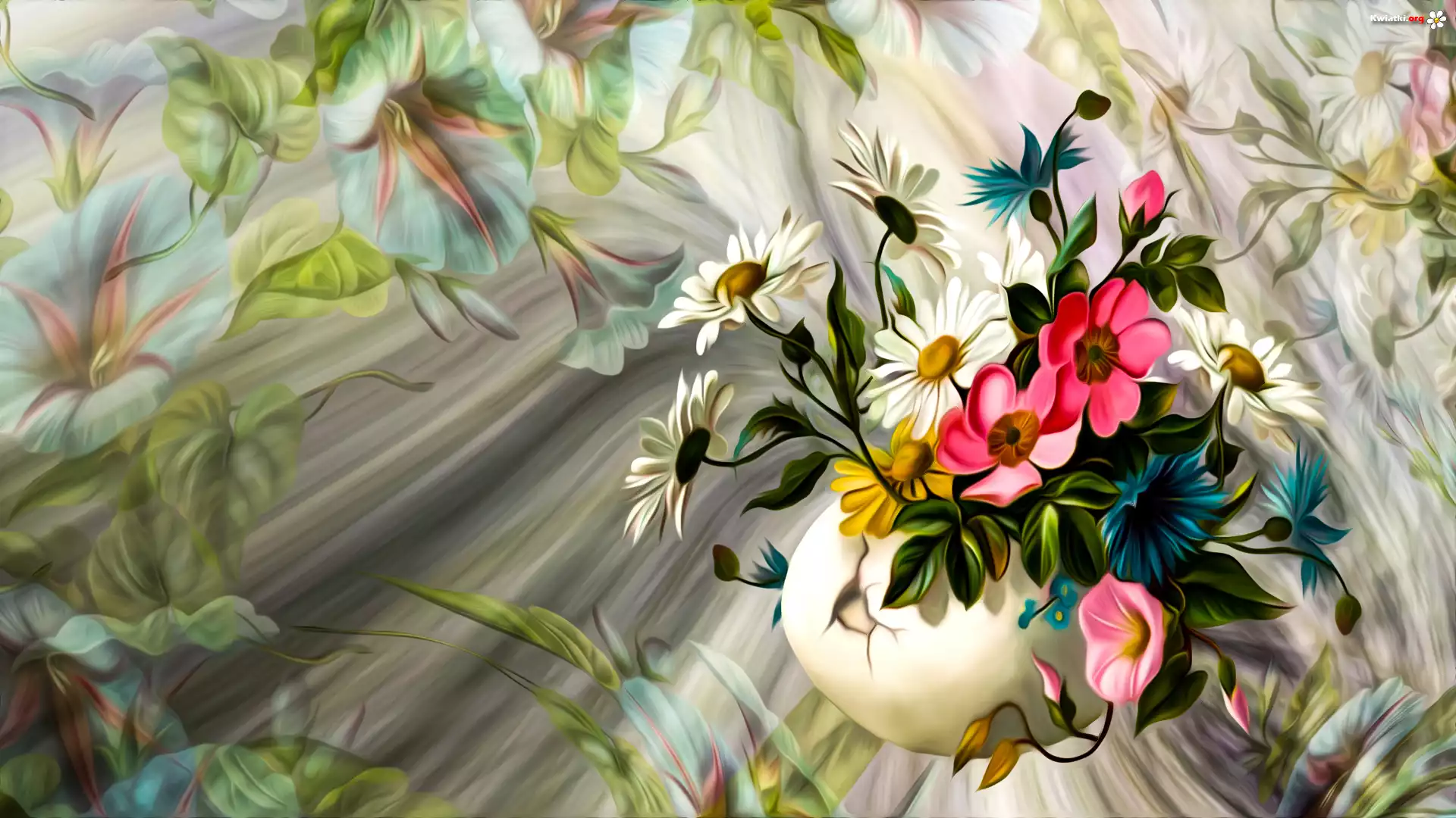 Grafika, Kwiaty, Bukiet, Wazonik - Zdjęcia